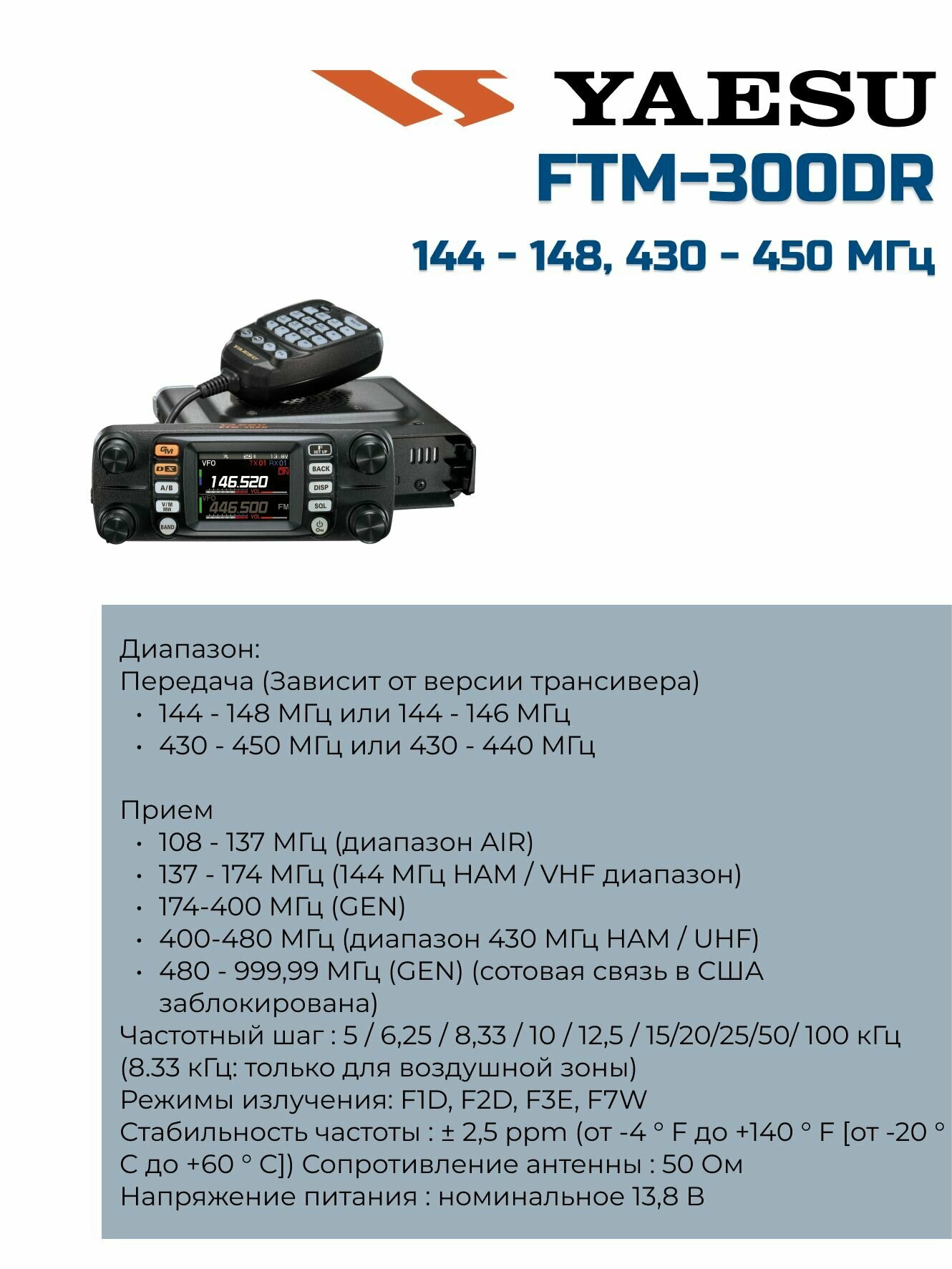 0 отзывов, средняя оценка 0. Чтобы купить «Радиостанция YAESU FTM-300DR» по лучшей цене мы сканируем авито, алиэкспресс, маркет, озон, савеловский, плеер, горбушку, беру, официальные сайты и находим минимальную. Администрация не несет ответсвенность актуальность цен на Радиостанция YAESU FTM-300DR, более подробно узнавайте на сайте магазина.