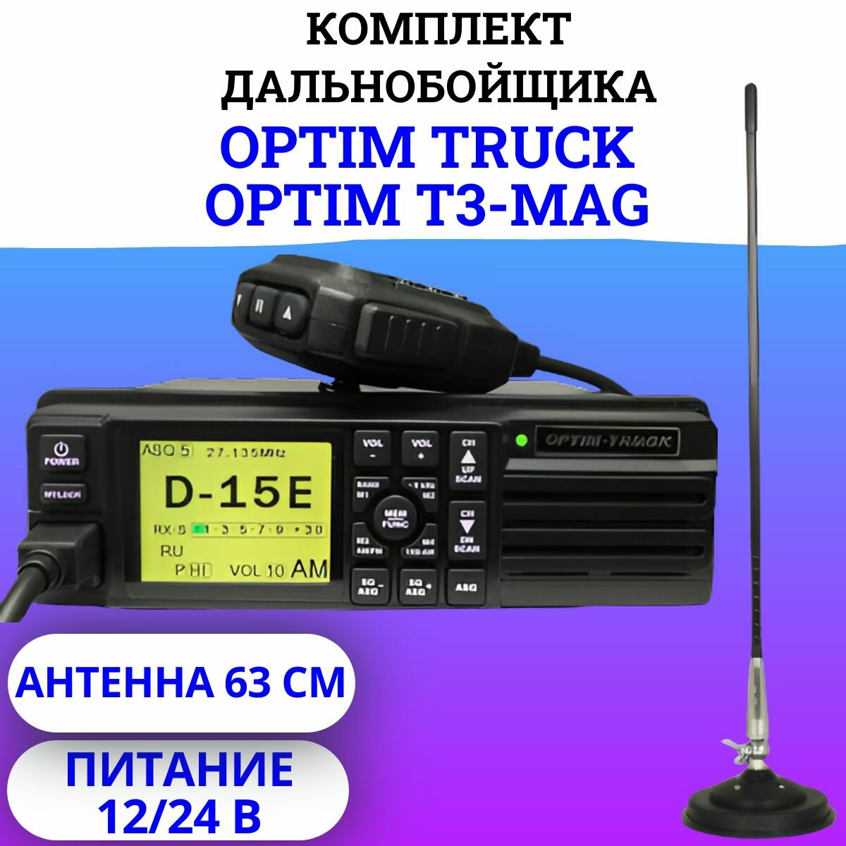 Комплект: Радиостанция автомобильная Optim Truck+Антенна магнитная 63 см информация: