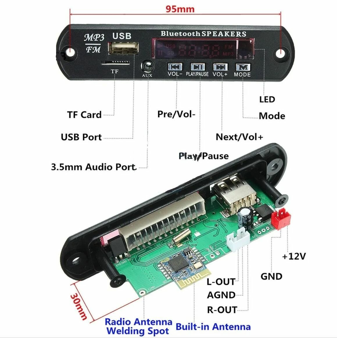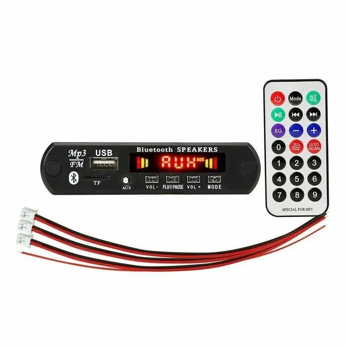 Модуль usb блютуз bluetooth для магнитофона мп3 (mp3)/Стерео аудио модуль врезной c пультом управления и шлейфом 12V информация: