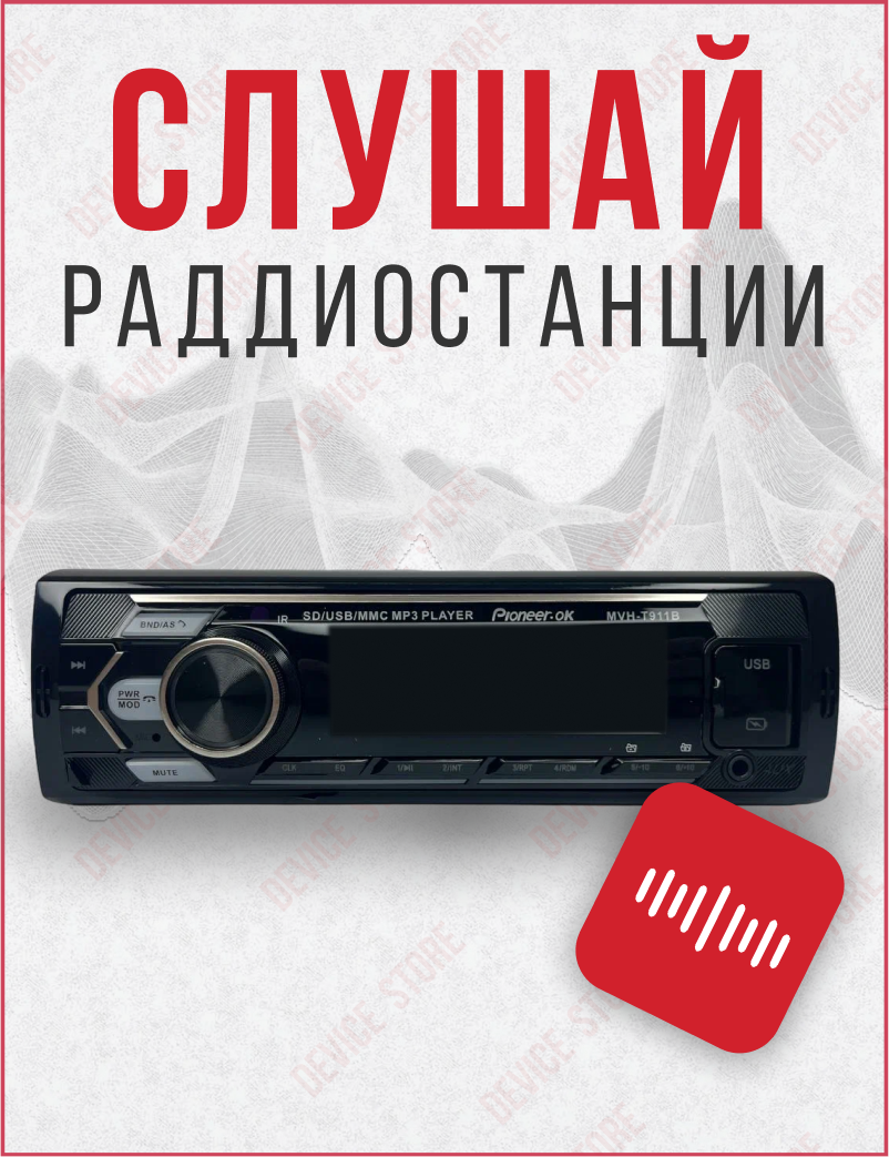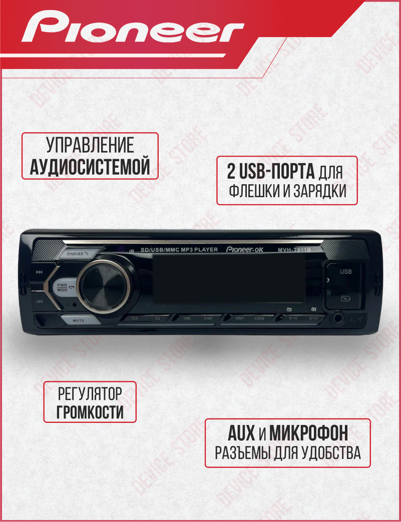 Отзывы на Магнитола автомобильная, автомагнитола 1 дин Pioneer MVH-T911B, автомагнитола USB, AUX на передней панели, автомагнитола с блютуз, подсветка