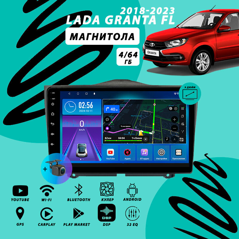 Магнитола Lada Granta (FL) 1 Рестайлинг 4Гб+64Гб/DSP/Android/Carplay/кулер/Wi-Fi/Bluetooth/2din/штатная магнитола информация: