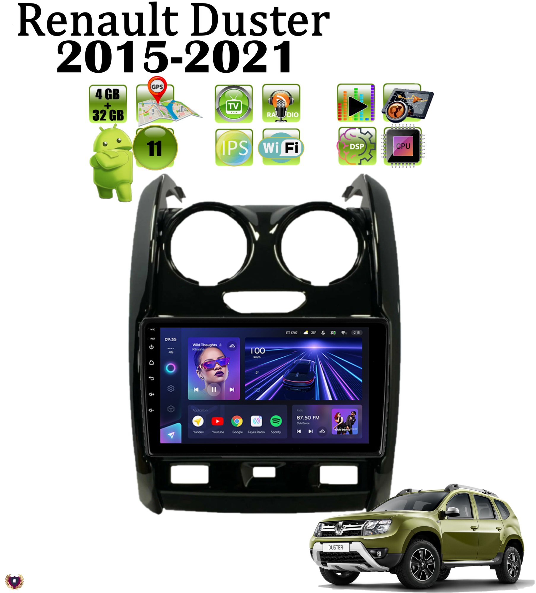 Автомагнитола для Renault Duster (Рено Дастер) (2015 - 2021) , Android 11, 4/32 GB, GPS, Bluetooth, WiFi, IPS экран, FM, сенсорные кнопки, поддержка кнопок на руле информация:
