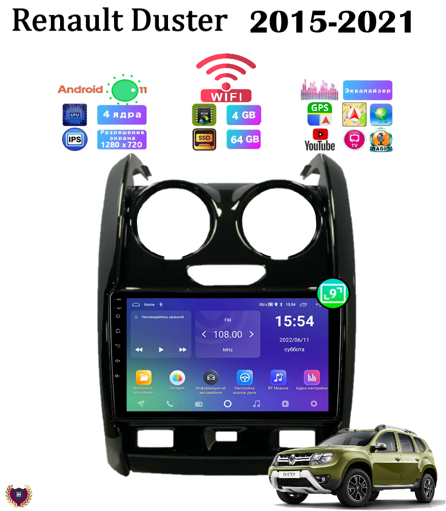 Автомагнитола для Renault Duster (Рено Дастер) (2015 - 2021) , Android 11, 4/64 GB, GPS, Bluetooth, WiFi, IPS экран, FM, сенсорные кнопки, поддержка кнопок на руле информация: