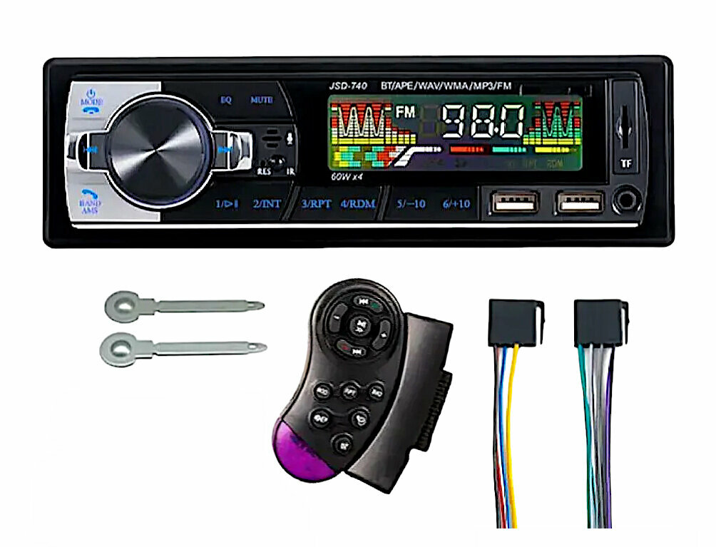 | Подробная комплектация | Автомагнитола, кабель для подключения, ключ для монтажа, пульт управления для руля |