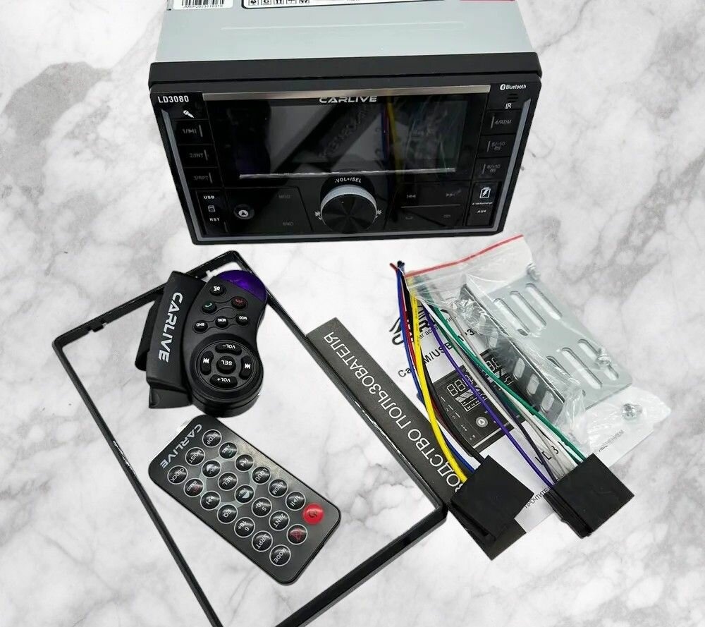 | Подробная комплектация | Автомагнитола, провода для подключения, рамка, салазки, пульт дистанционного управления, пульт на руль, инструкция на русском языке |