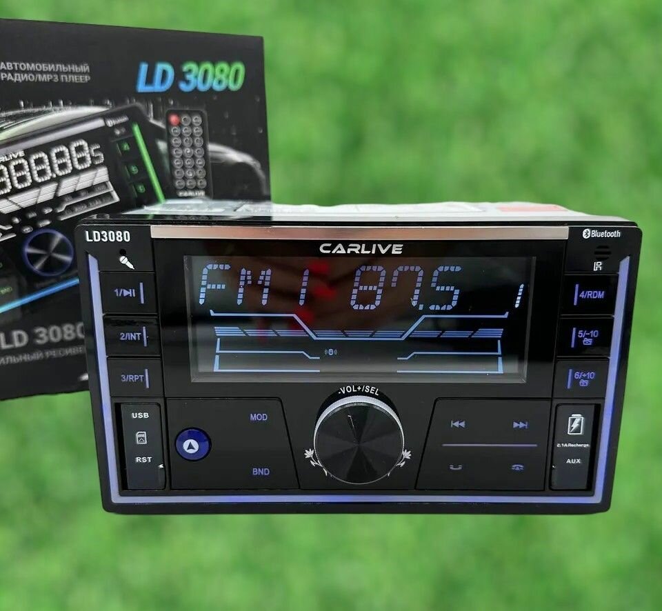 CARLIVE Автомагнитола Универсальная 1 Din с Bluetooth, LED Экран, Пульт ДУ, Подсветка, SD, AUX, USB, 12V, радио