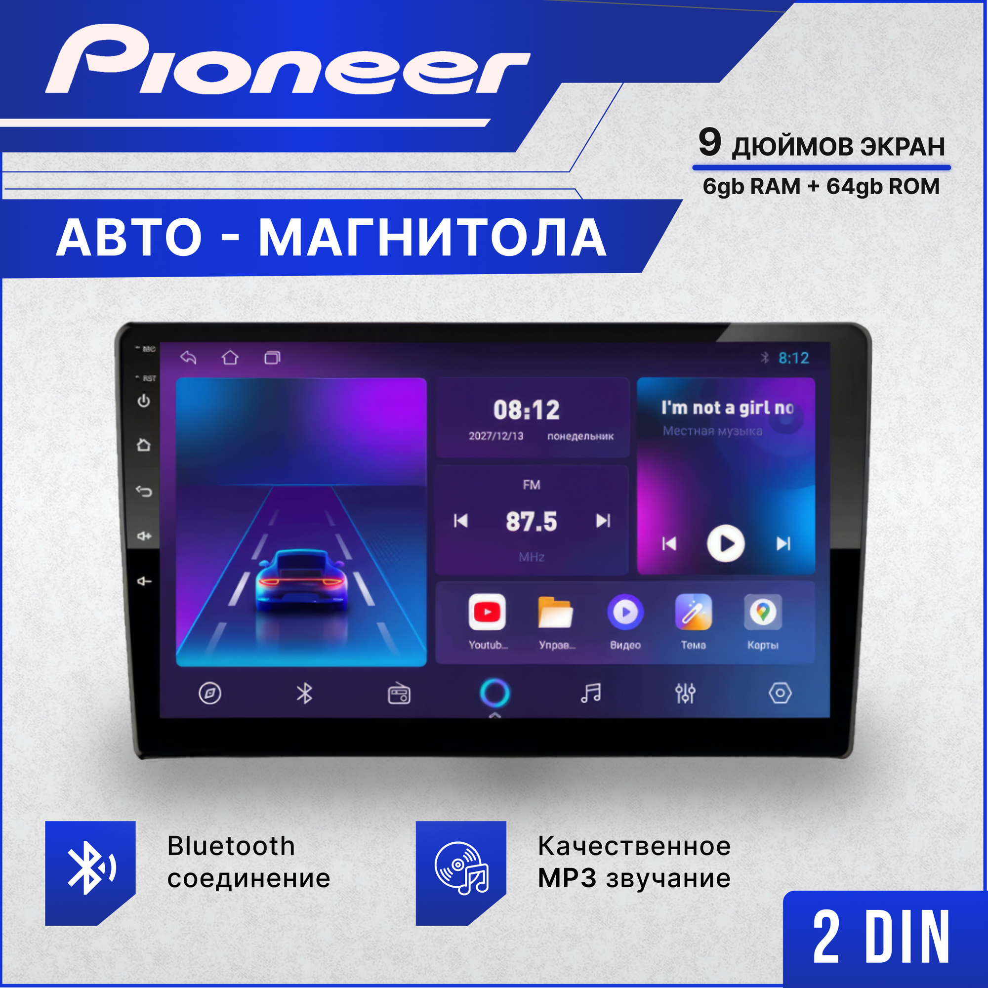 Магнитола автомобильная, автомагнитола 2 дин Pioneer AX3 ( 6+64Gb, 9 дюймов), автомагнитола USB, AUX на передней панели, автомагнитола с блютуз, подсветка 12 170 ₽