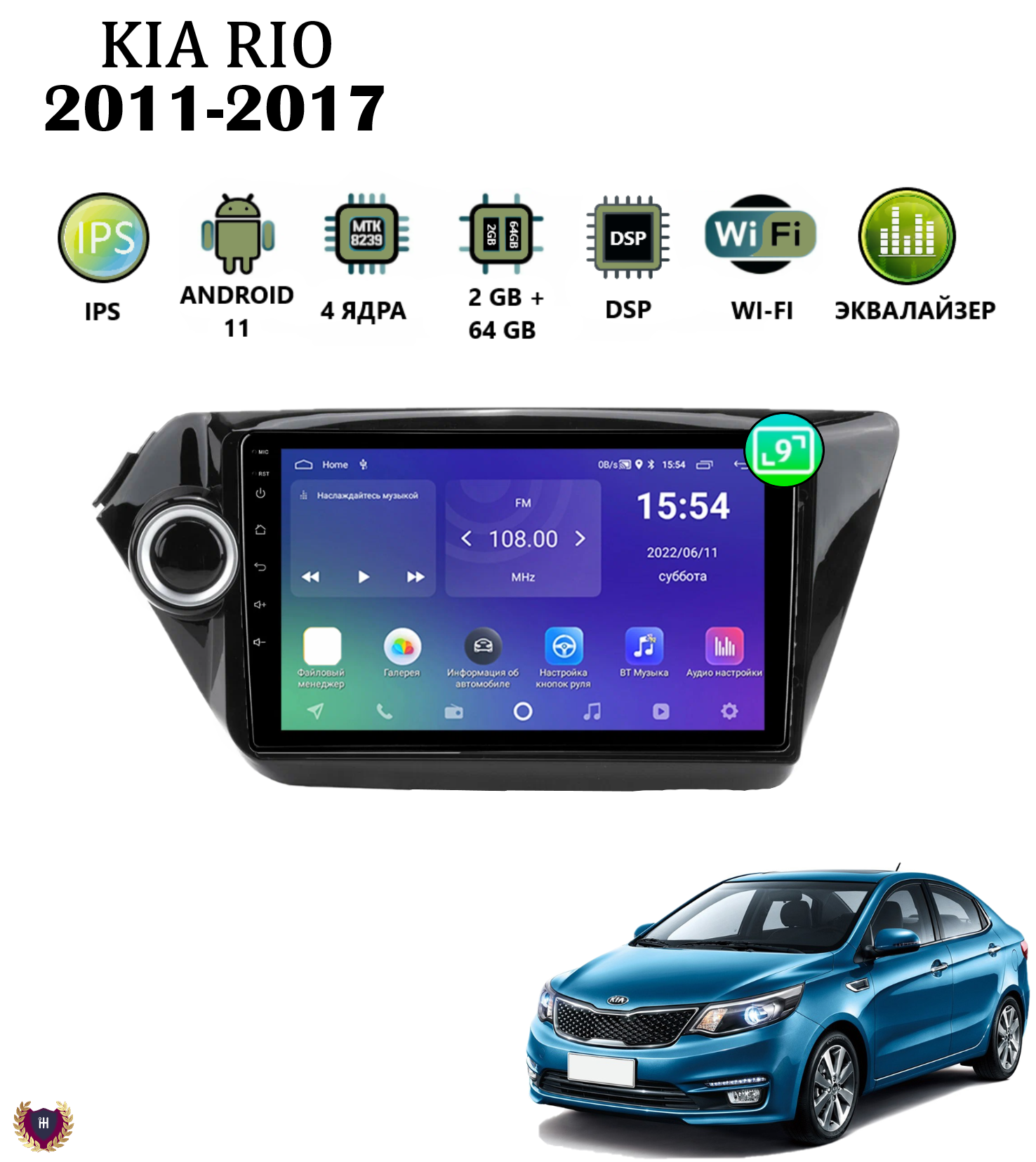 Автомагнитола для Kia Rio (2011-2017), Android 11, 2/64 Gb, Wi-Fi, GPS, IPS, сенсорные кнопки информация: