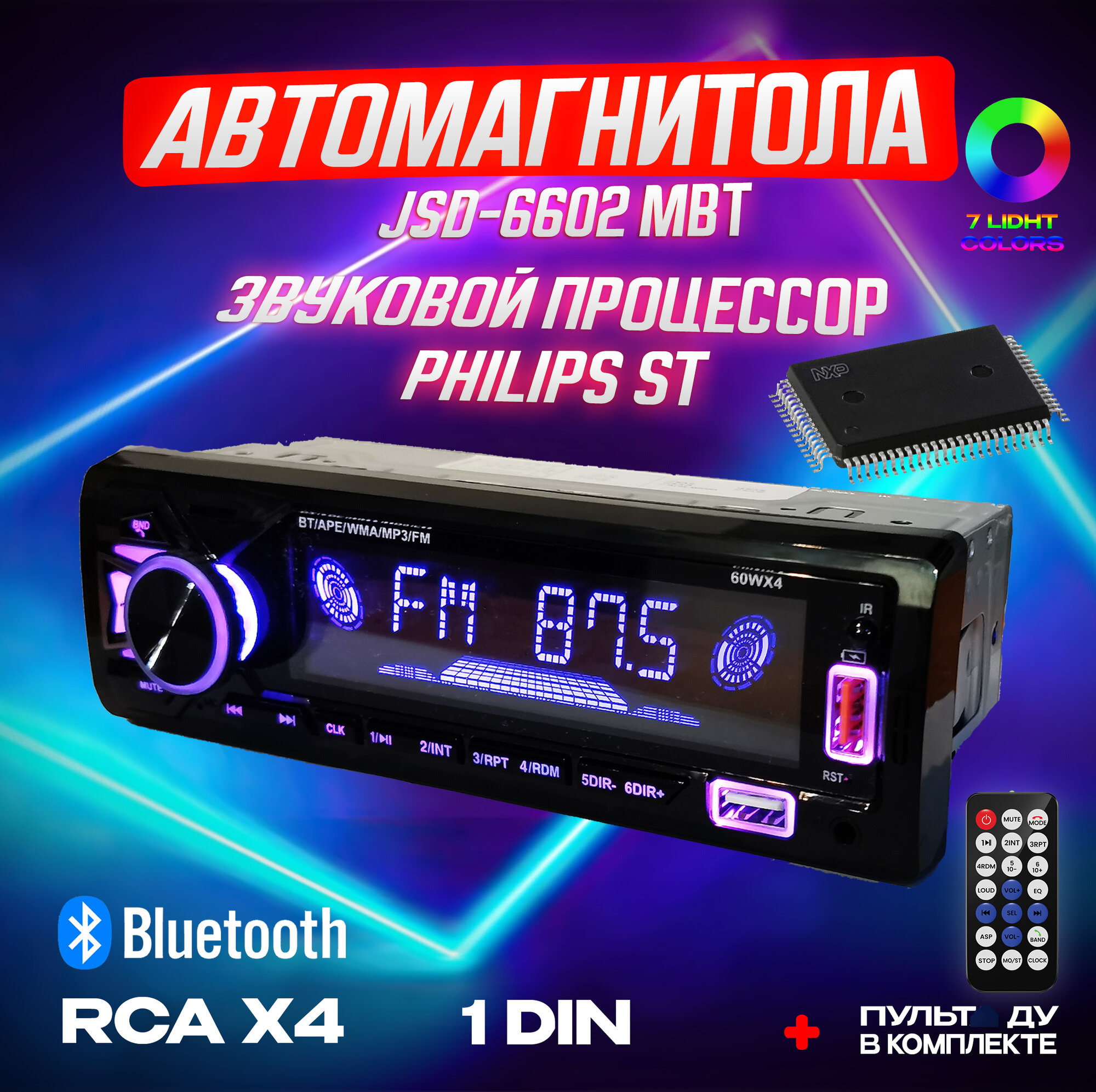 Магнитола 6602 MBT процессорная/ 1 Din с Bluetooth AUX USB/7 цветов информация: