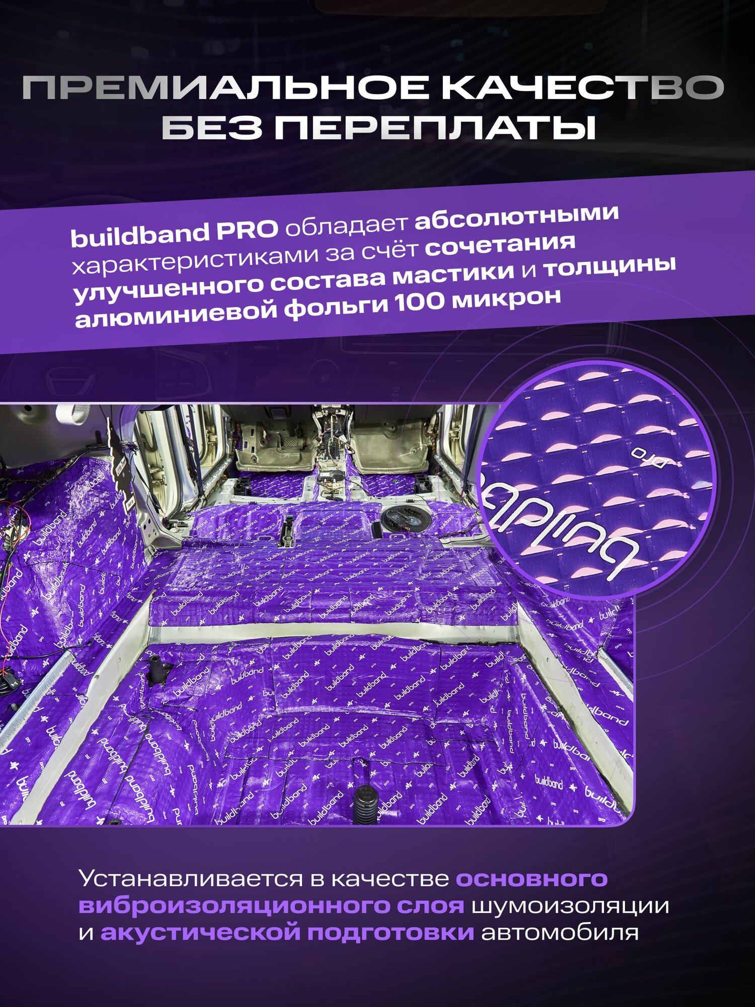 Отзывы на Шумоизоляция buildband PRO 2, комплект 30 листов/ Шумка для машины самоклеящаяся/ звукоизоляция