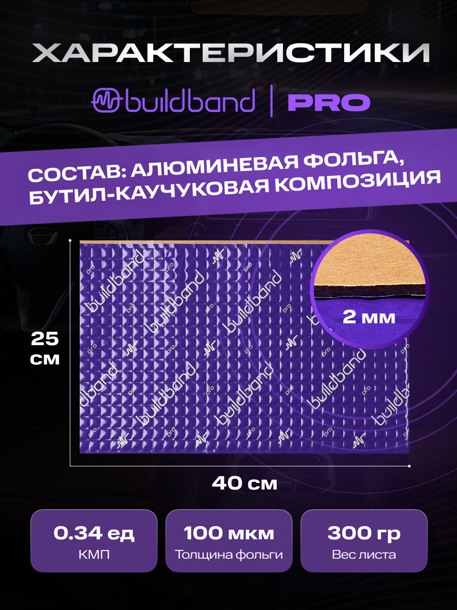 Шумоизоляция buildband PRO 2, комплект 20 листов/ Шумка для машины самоклеящаяся/звукоизоляция информация: