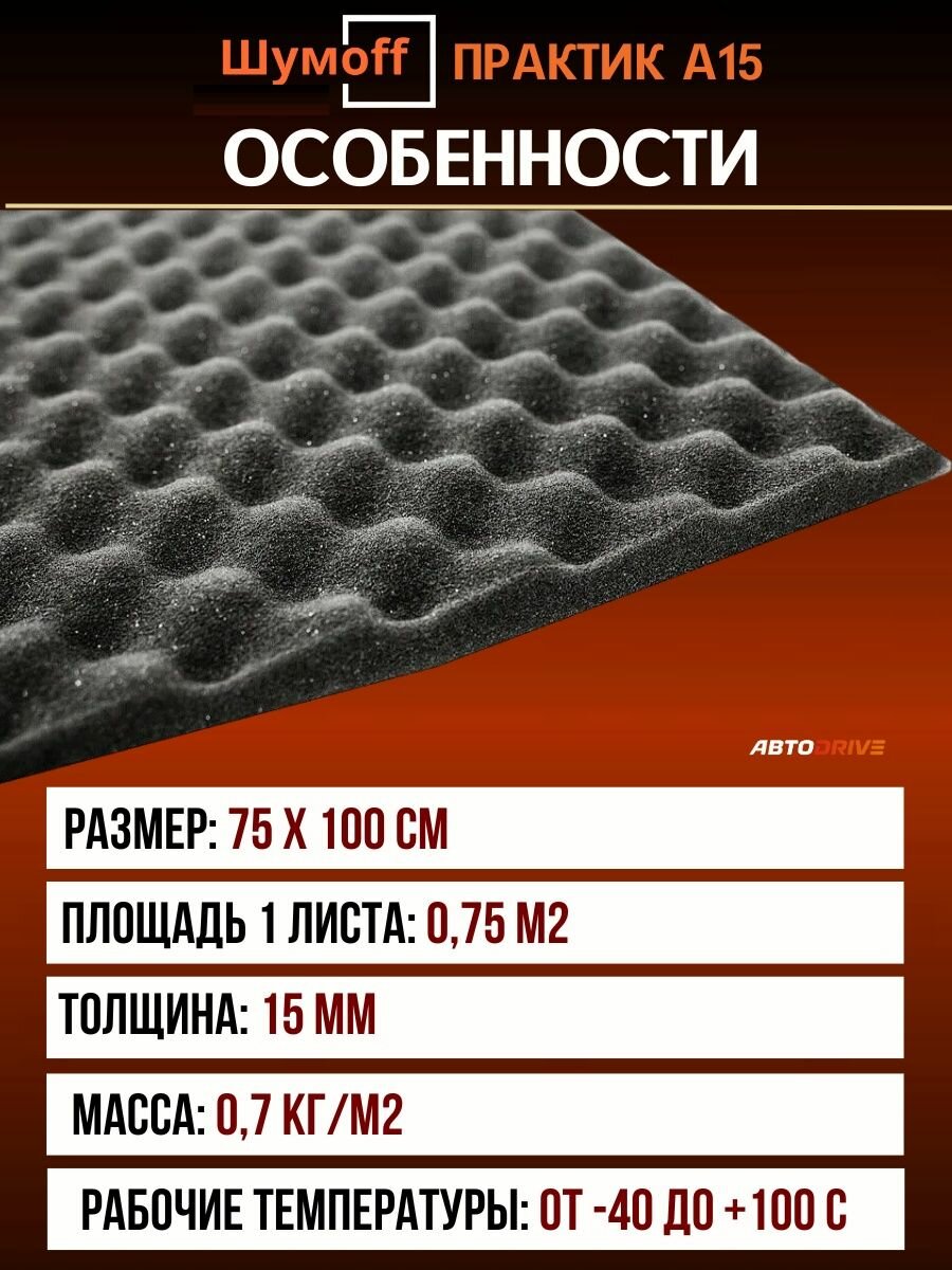 Акустический поролон Шумофф Практик А15 - 2 листа. Шумоизоляция для автомобиля волна Шумоff Practik 15 мм, шумка в авто, шумоизоляция дверей, крыши авто, шумка в машину, звукоизоляция авто информация: