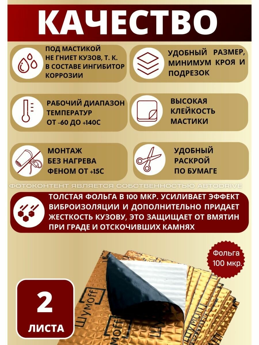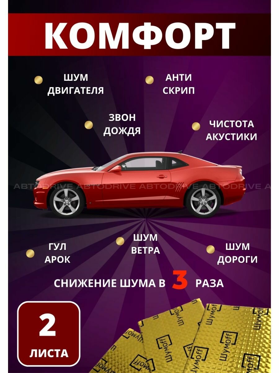 Шумоизоляция для автомобиля Шумофф М2 - 2 листа. Толщина 2 мм. Виброизоляция авто, вибропласт, вибродемпфер, шумка в машину. Шумоизоляция для дверей, крыши, потолка, капота, локеров. Звукоизоляция в авто Шумоff 2 мм. Шумоизоляция ванны, отлива 412 ₽