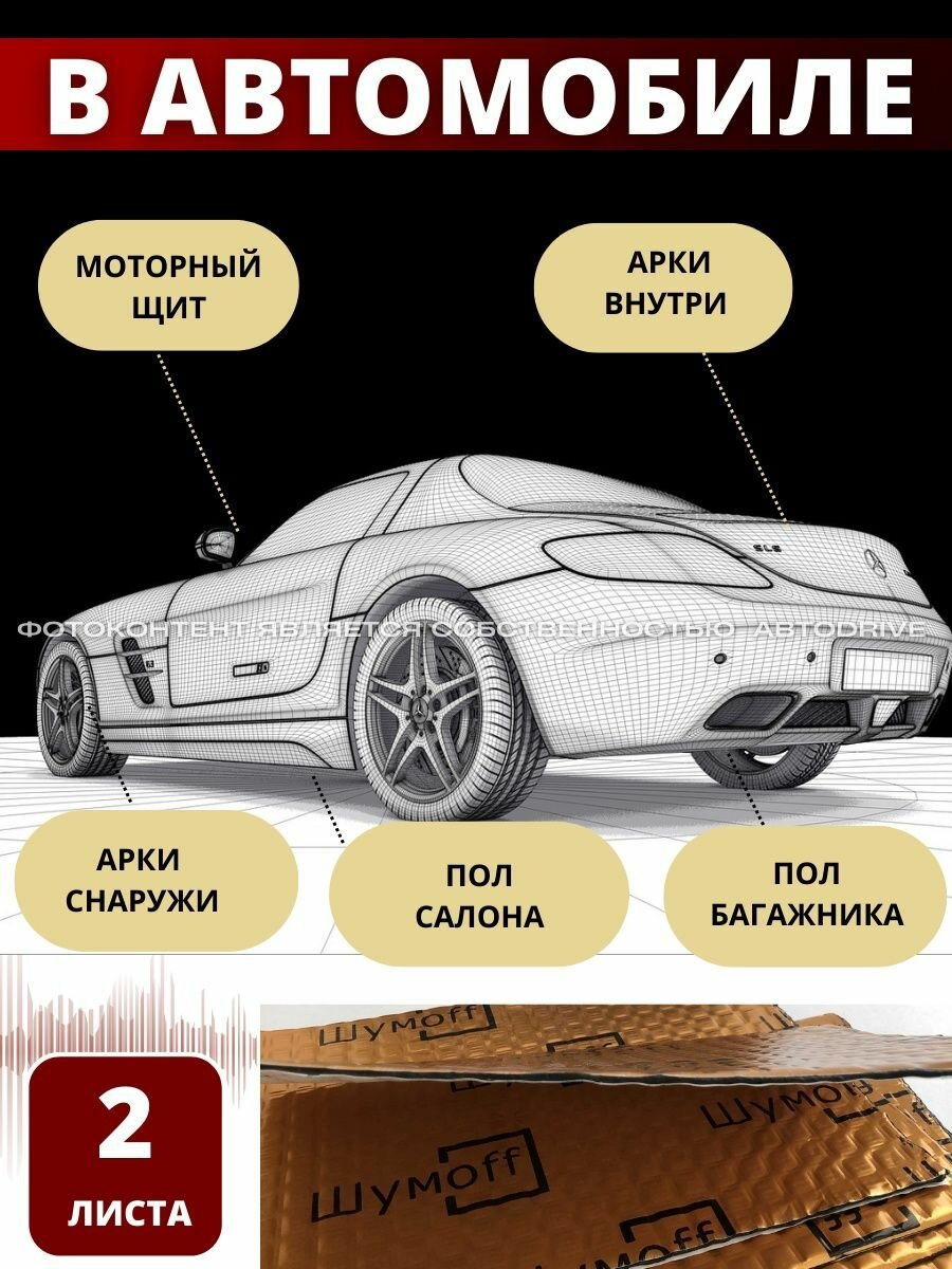 10 цен на Виброизоляция Шумофф М4, 4 мм. - 2 листа. Шумоизоляция для автомобиля, шумка в авто, вибропласт, вибродемпфер. Шумоизоляция арок, пола, багажника, канализационных труб, стояка, ванны, раковины