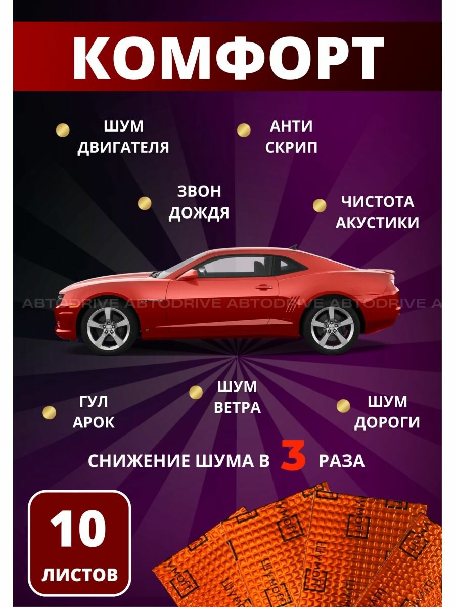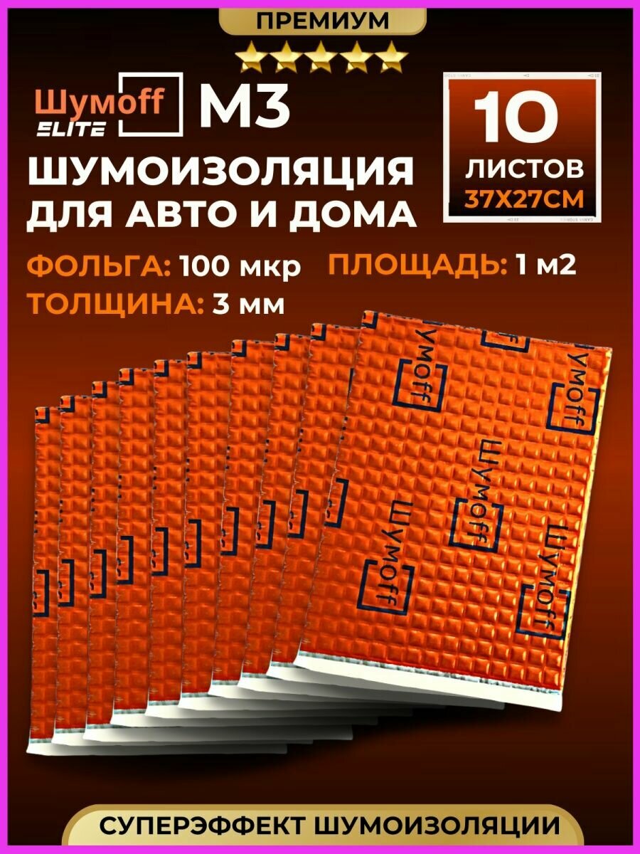 10 цен на Шумоизоляция для автомобиля Шумофф М3 - 10 листов. Толщина 3 мм. Виброизоляция авто, вибропласт, вибродемпфер, шумка в машину. Шумоизоляция для дверей, крыши, потолка, капота, арок, пола, багажника. Звукоизоляция в авто 3 мм. Шумоизоляция ванны, стояка