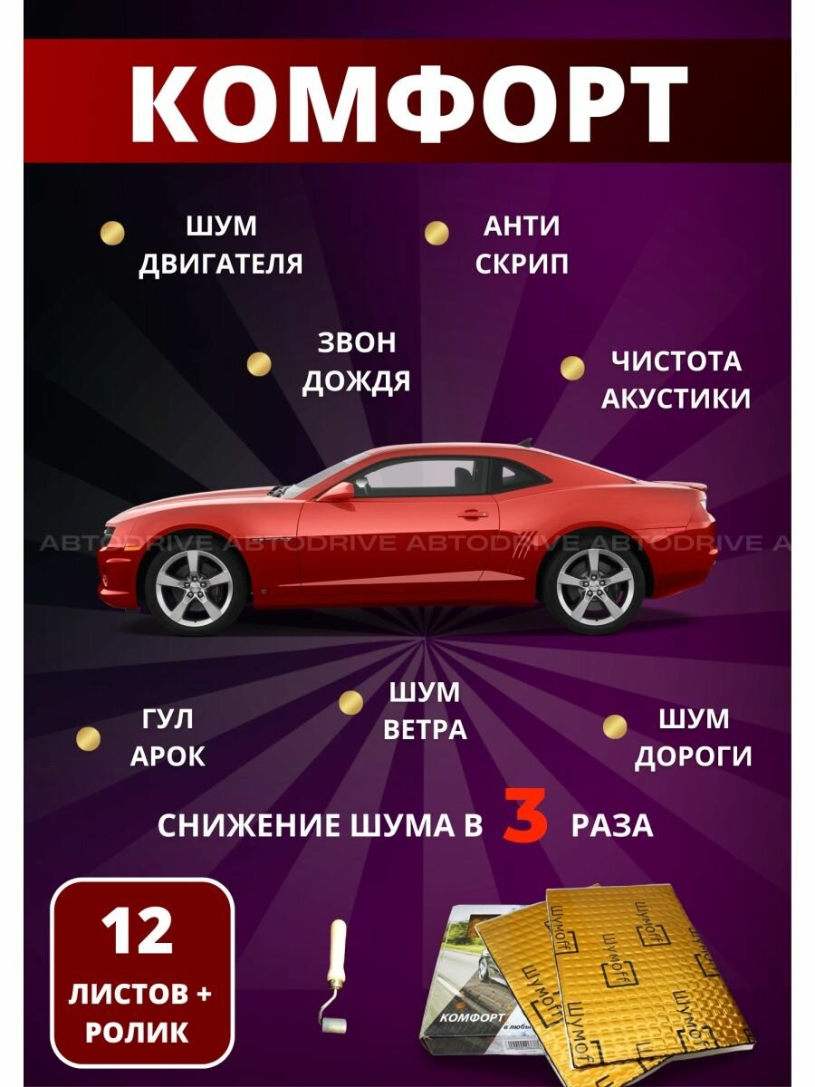 Шумоизоляция для автомобиля Шумофф М3 - 16 листов + ролик прикаточный. Виброизоляция авто, вибропласт, вибродемпфер, шумка в машину. Шумоизоляция для дверей, крыши, потолка, капота, арок, пола, багажника. Звукоизоляция в авто 3 мм. 2 574 ₽