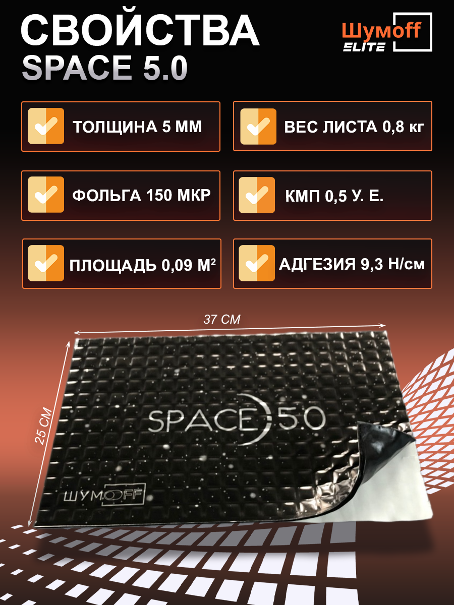Виброизоляция авто Шумофф Спейс 5,0 - 10 листов. Шумоизоляция для автомобиля Шумоff Space 5 мм, шумка в авто, вибропласт, вибродемпфер. Шумоизоляция для дверей, крыши, потолка, арок, пола, багажника, канализационных труб, стояка, ванны, раковины информация: