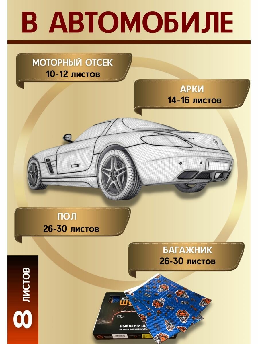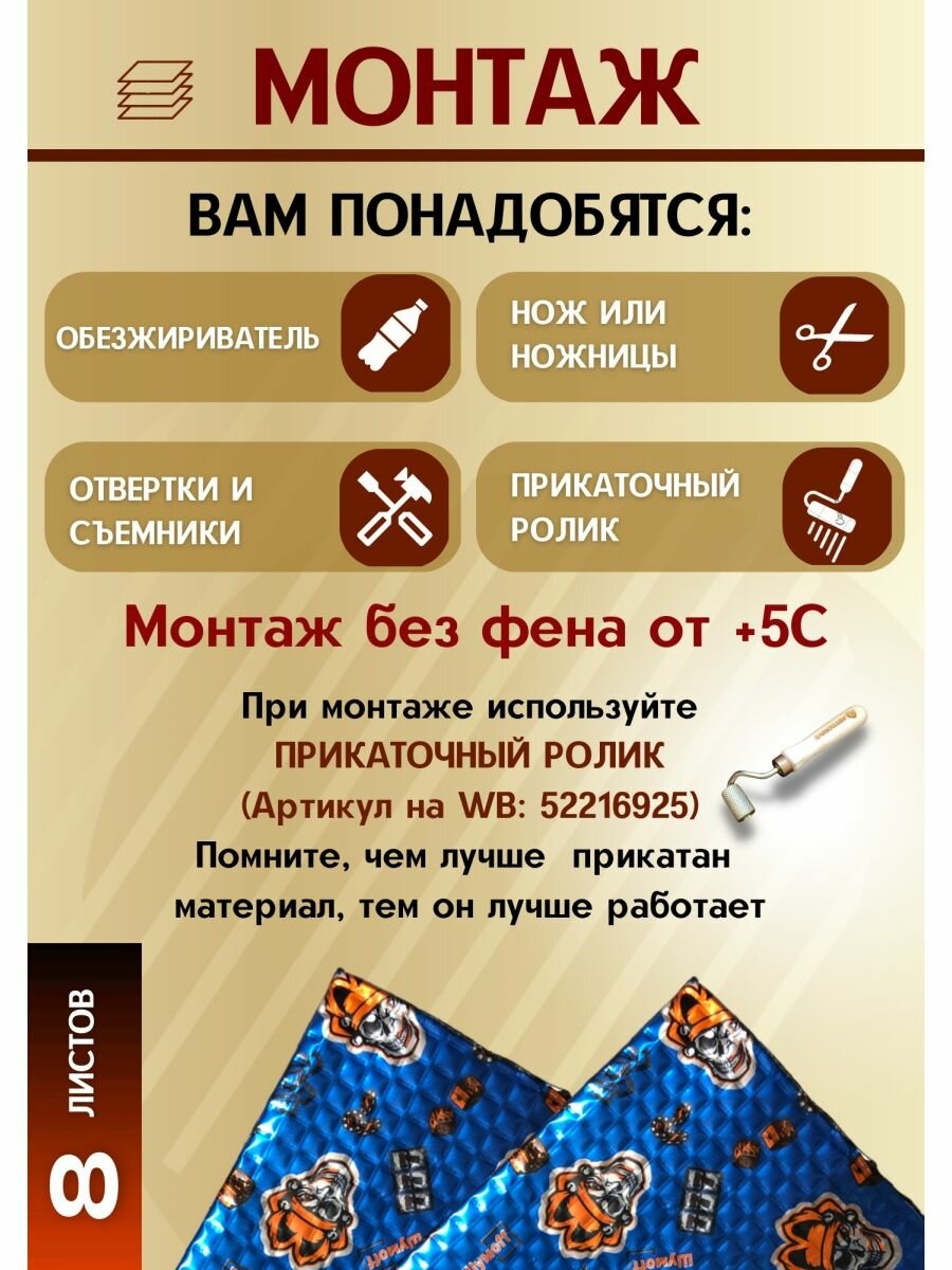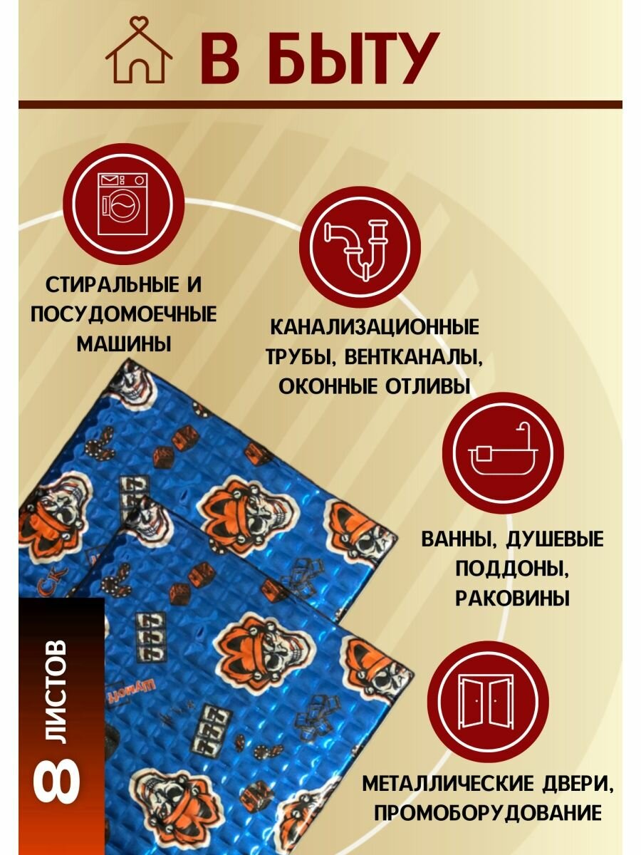 Шумоизоляция для автомобиля Шумофф Джек 8 листов. Толщина 2 мм = 3 мм. Виброизоляция авто, вибропласт, вибродемпфер, шумка в машину. Шумоизоляция для дверей, крыши, потолка, капота, локеров. Звукоизоляция в авто Шумоff Jack. Шумоизоляция ванны, отлива 1 582 ₽