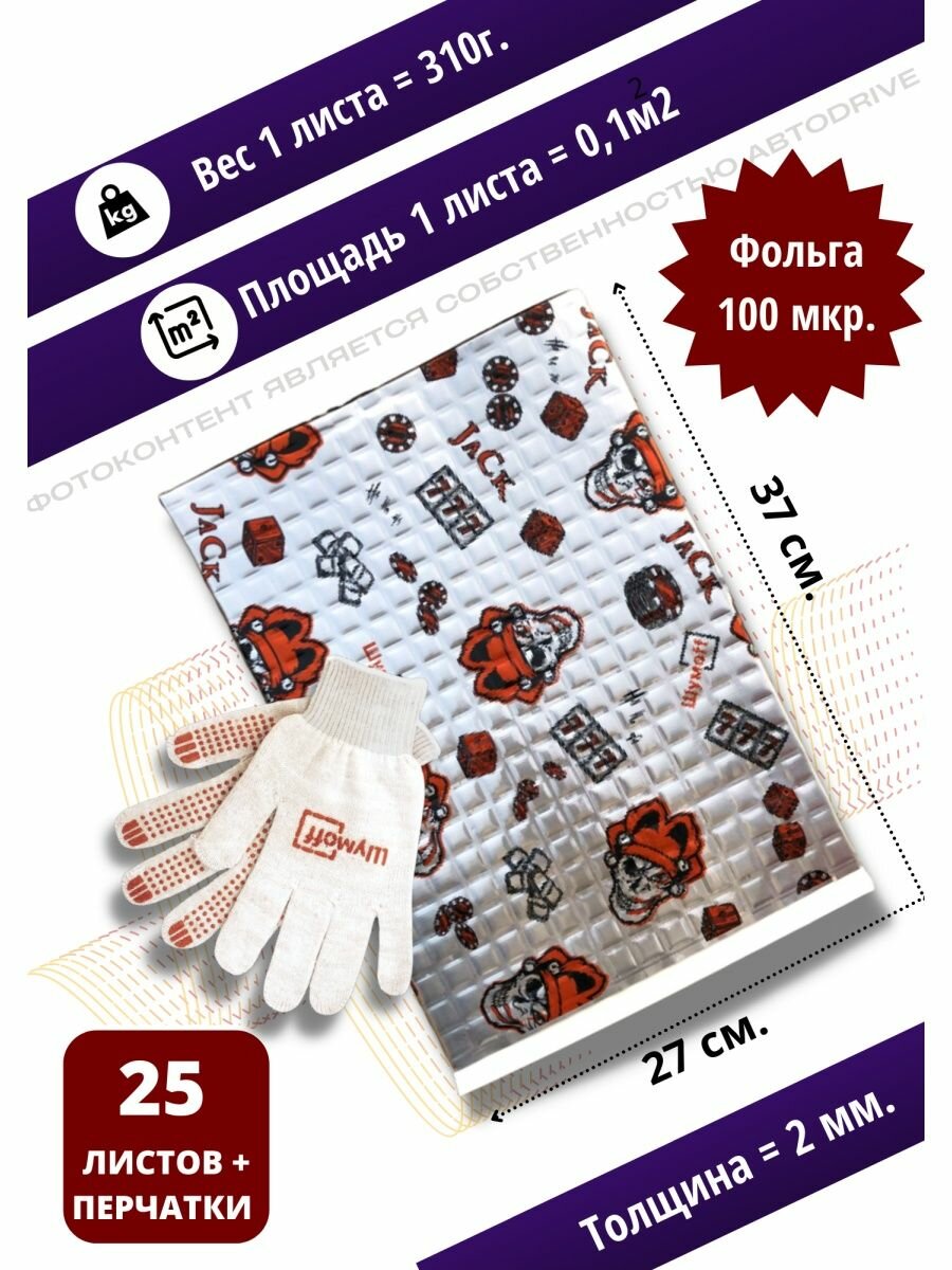 Шумоизоляция для автомобиля Шумофф Джек 25 листов. Толщина 2 мм = 3 мм. Виброизоляция авто, вибропласт, вибродемпфер, шумка в машину. Шумоизоляция для дверей, крыши, потолка, капота, локеров. Звукоизоляция в авто Шумоff Jack. Шумоизоляция ванны, отлива информация: