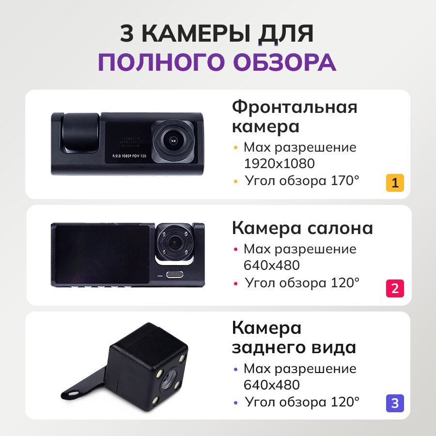 Отзывы на Видеорегистратор для автомобиля с тремя камерами, Full HD 1080P, Датчик удара G-Sensor