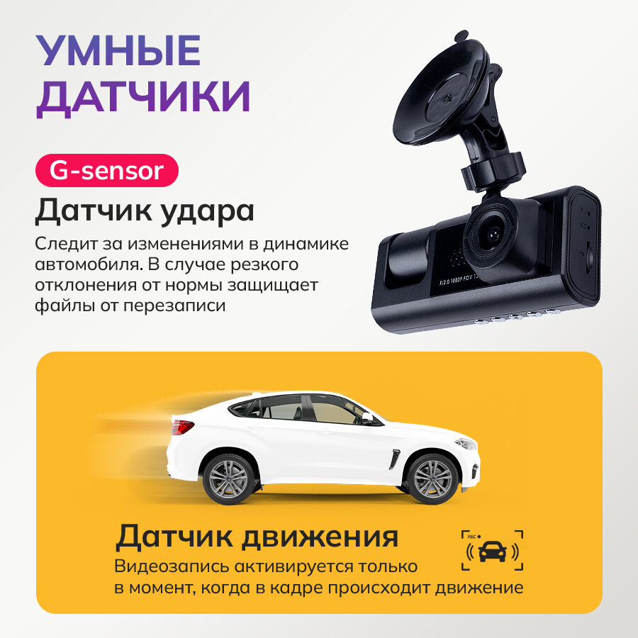 Видеорегистратор для автомобиля с тремя камерами, Full HD 1080P, Датчик удара G-Sensor информация: