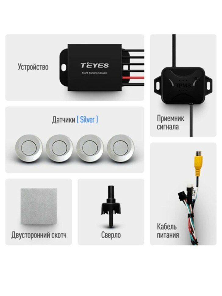 Передние автомобильные парктроники Teyes для CC3 2K / CC3 / CC2 Plus / SPRO Plus / TPRO 2 / X1 silver 4шт информация: