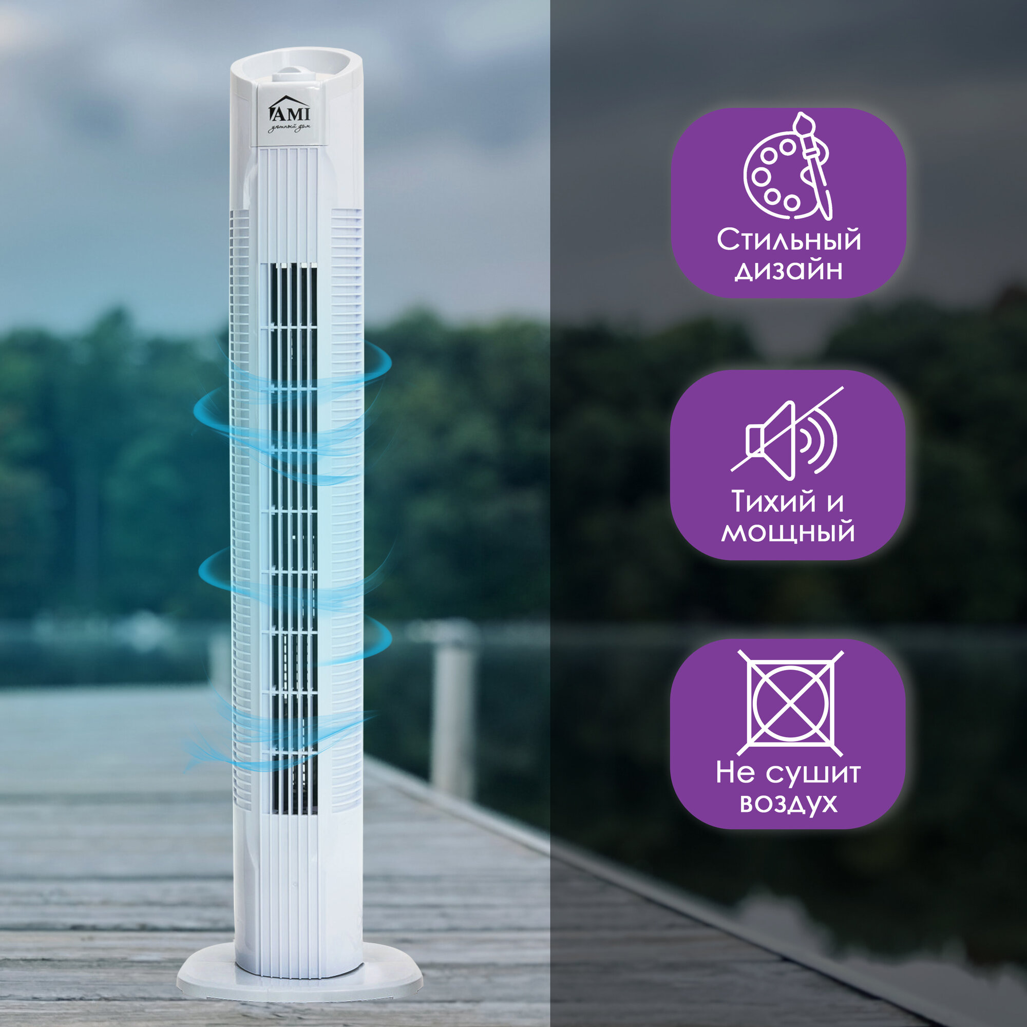 10 цен на Вентилятор напольный колонный, поворотный вентилятор настольный, белый, мощность 50 W, 3 скорости, 79 см высота, Ами Мебель