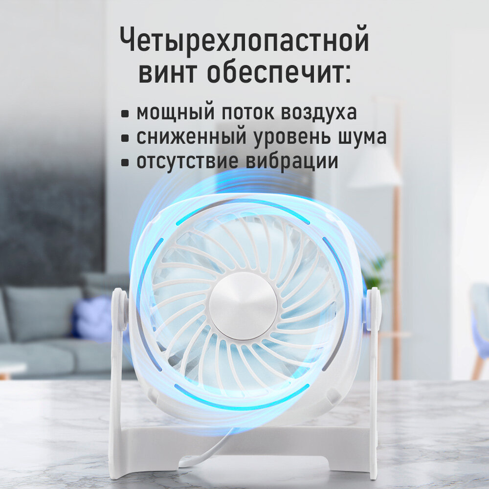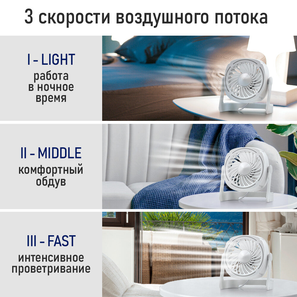 Вентилятор Power bank, складной, портативный, 5 скоростей работы, 3000 мАч, белый