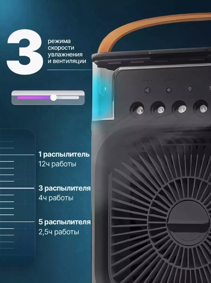 Отзывы на Портативный мини вентилятор с увлажнением и подсветкой, мини-кондиционер чёрный