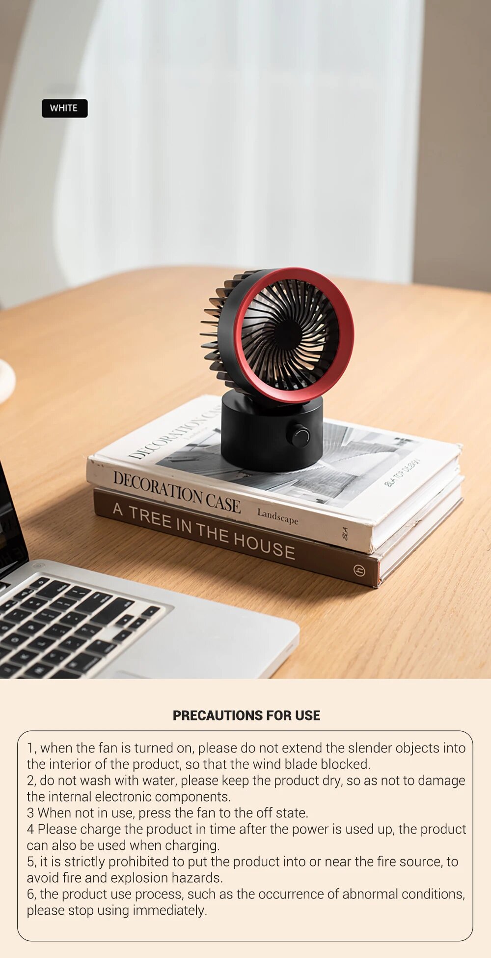 Вентилятор Power bank, складной, портативный, 5 скоростей работы, 3000 мАч, белый