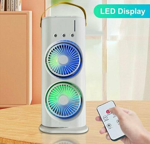 Мобильный кондиционер, вентилятор с увлажнителем, RGB-подсветка Double Ended Spray Fan, пульт управления в комплекте, цвет белый информация: