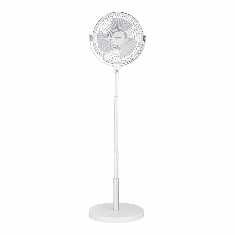 Вентилятор портативный STINGRAY ST-FN4130A, аккумулятор, стойка телескопическая, низкий уровень шума, устойчивая подставка, белый информация: