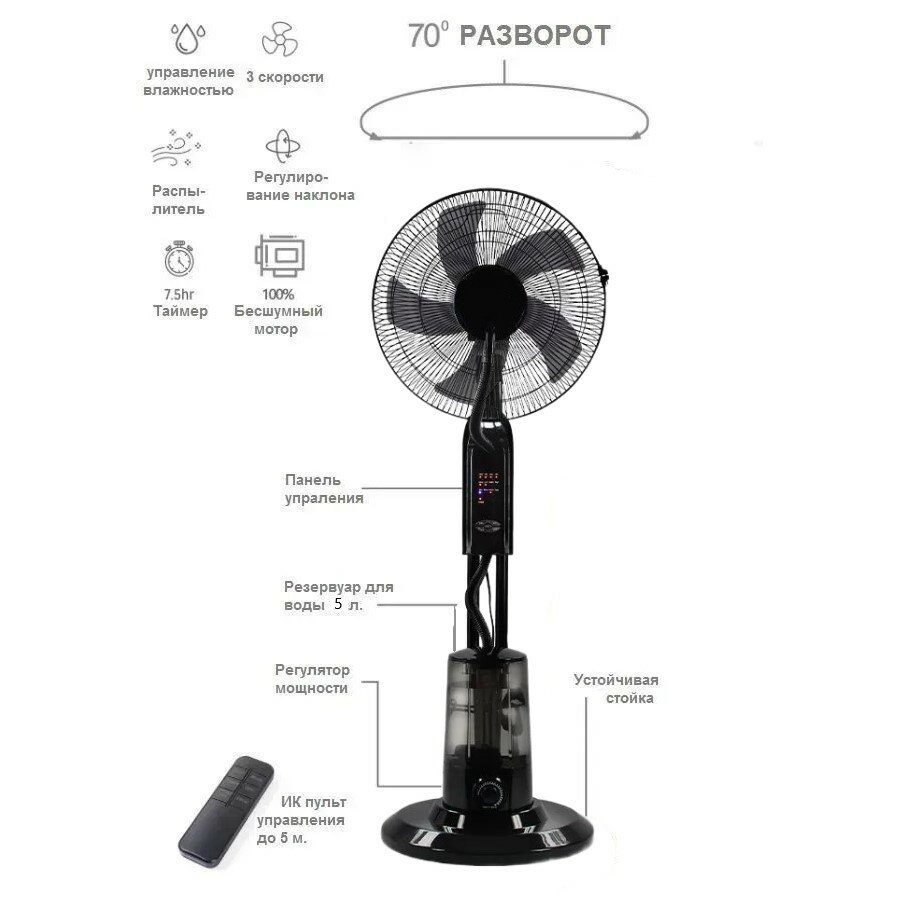 10 цен на Вентилятор напольный с пультом и мощным двигателем, вентилятор 5 лопастей с увлажнителем , увлажнитель воздуха на 5л