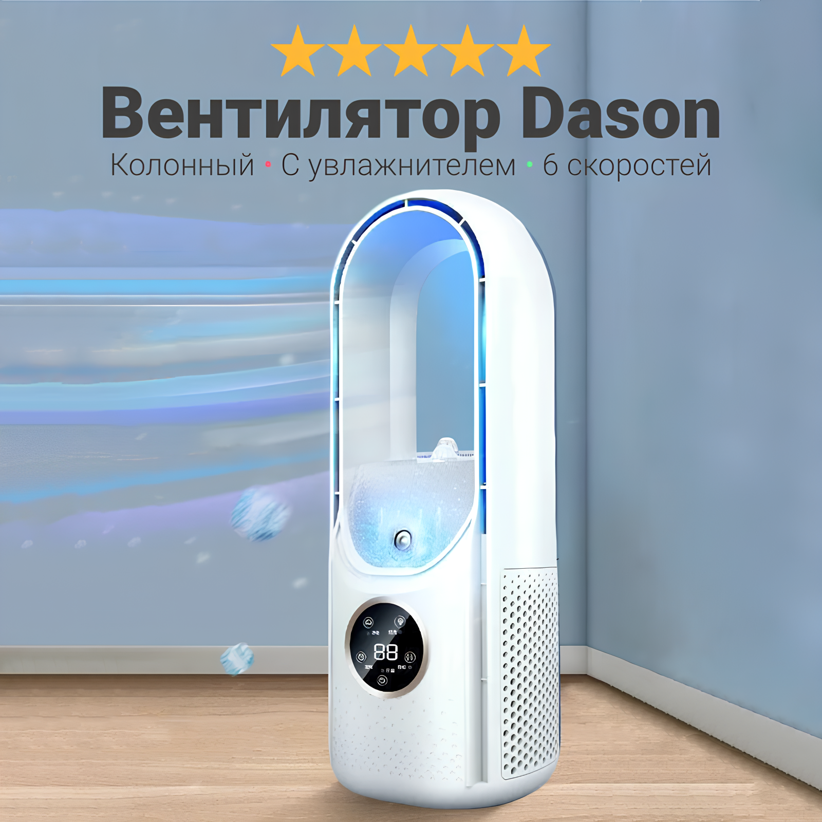 Отзывы на Вентилятор напольный колонный Dason 27, с увлажнителем и охлаждением воздуха 6 скоростей, белый