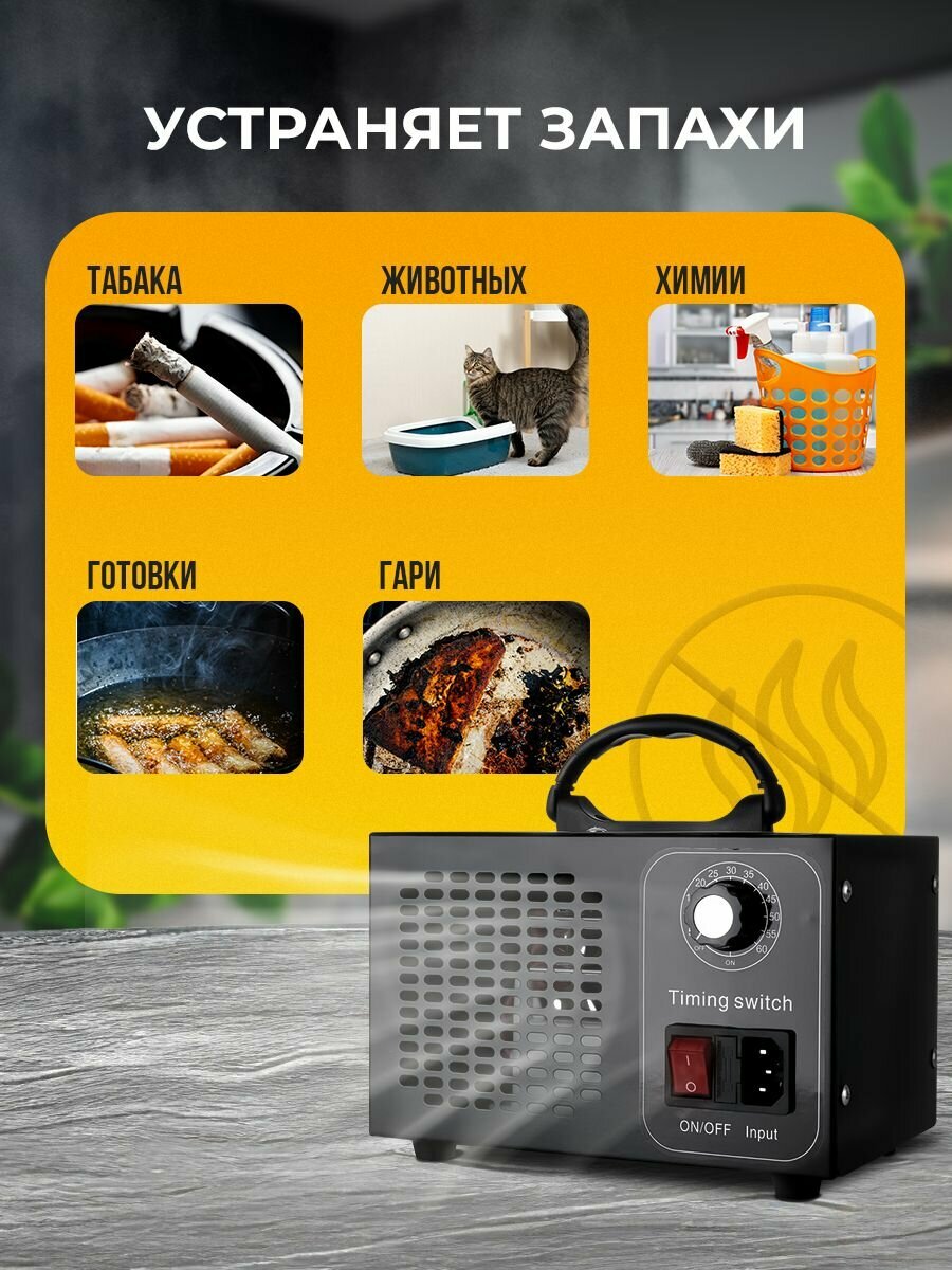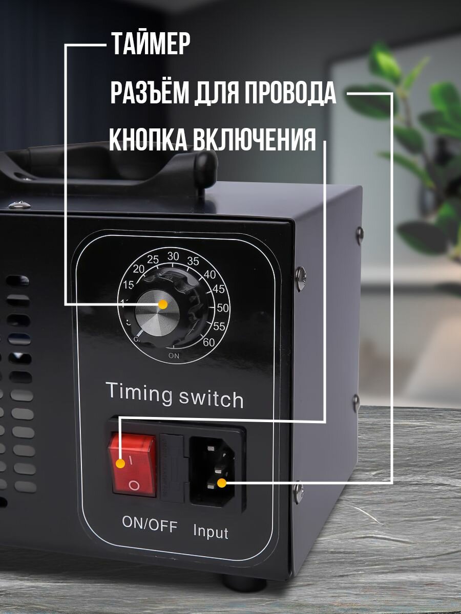 Озонатор 500 мг/час, 220AC/12DC с таймером. Очиститель и очиститель воздуха, воды, продуктов и холодильника, охват до 50 м2. Озонатор для дома.
