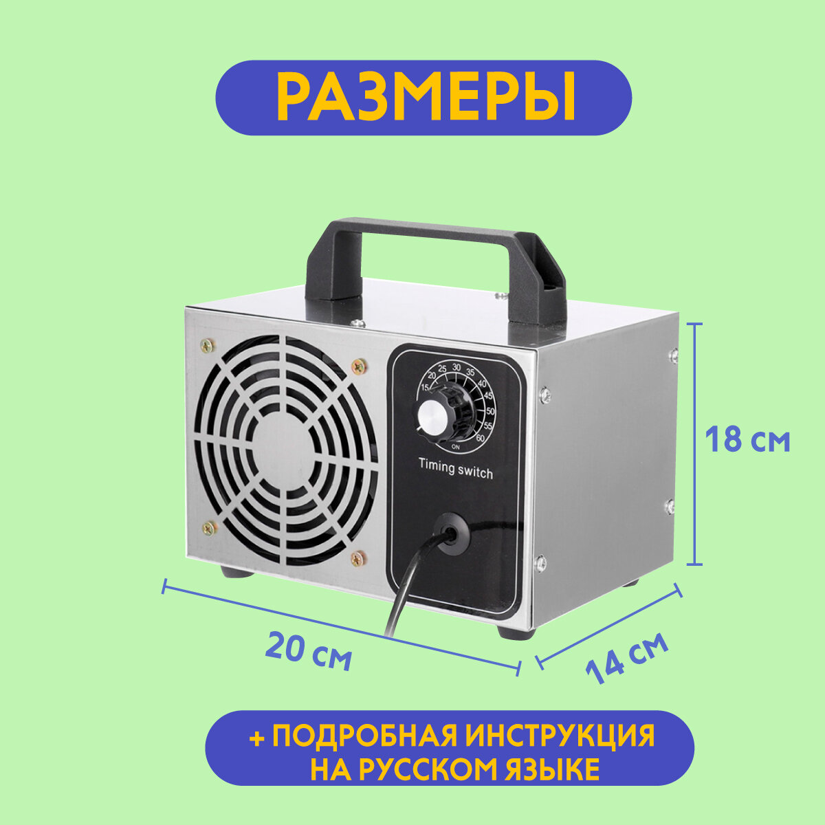 Озонатор ионизатор воздуха бытовой для дезинфекции помещений, домов площадью до 160 м2 80 грамм/час, очиститель воздуха, серебристый информация: