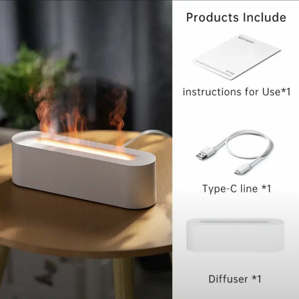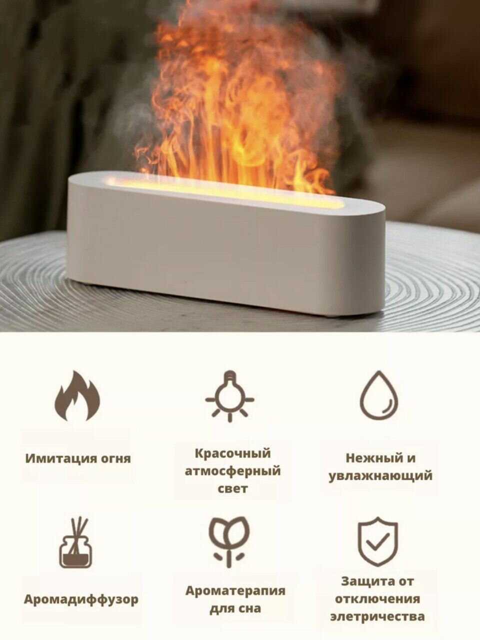 Увлажнитель воздуха и аромадиффузор с подсветкой для дома, ночник с эффектом пламяни