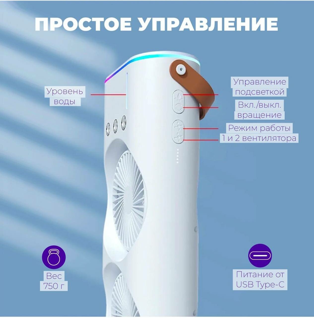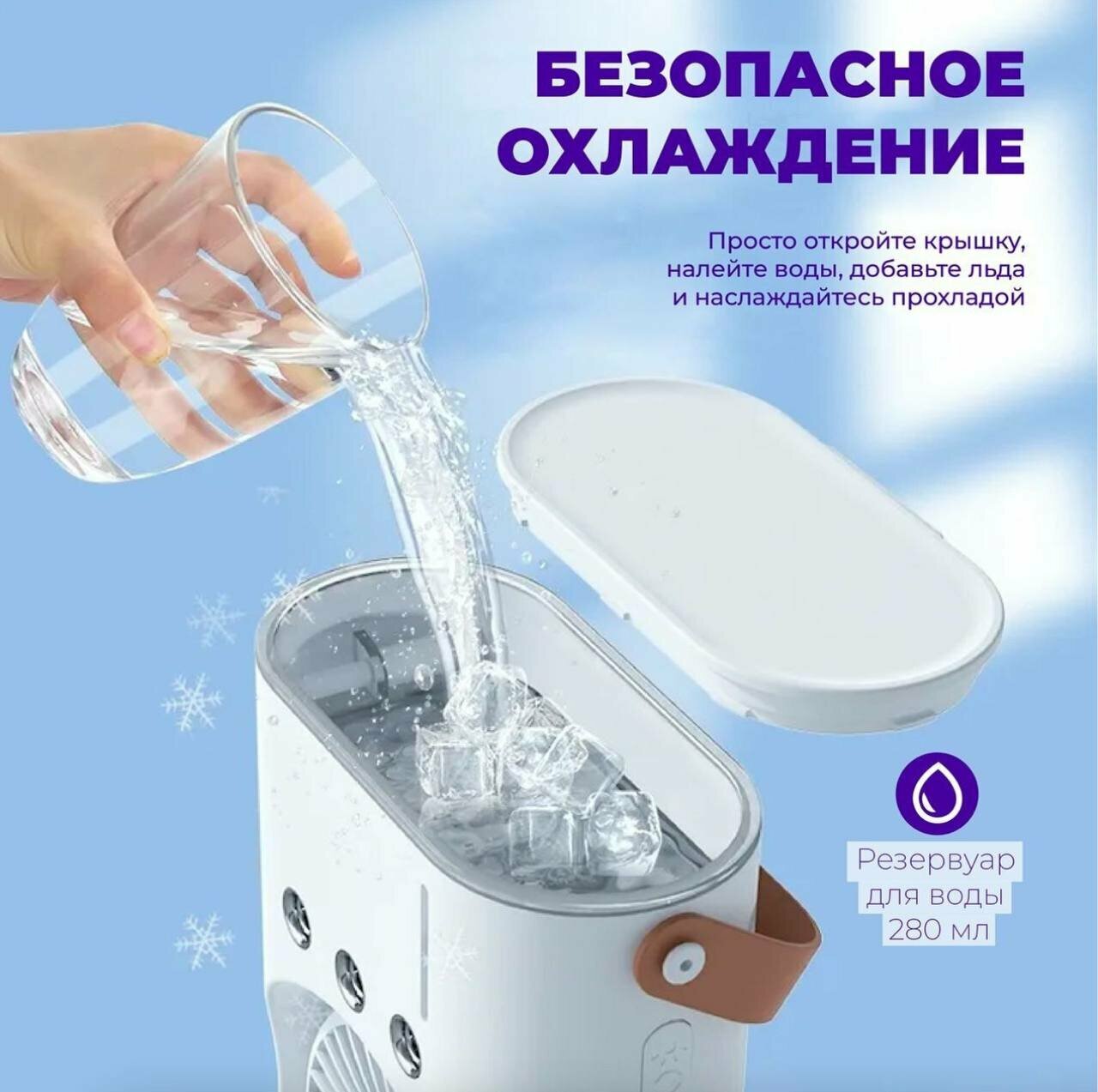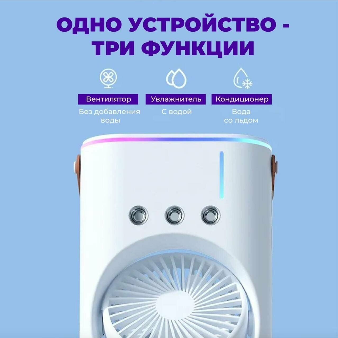 Мини-кондиционер воздуха 3 в 1: вентилятор, увлажнитель и охладитель! Портативный, настольный, с LED подсветкой и 3 скоростями. информация: