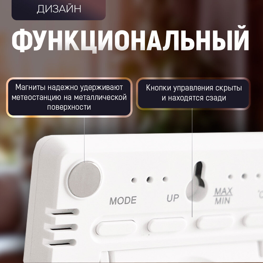 Домашняя метеостанция, часы с гигрометром и термометром / Метеостанция для дома с календарём и будильником информация: