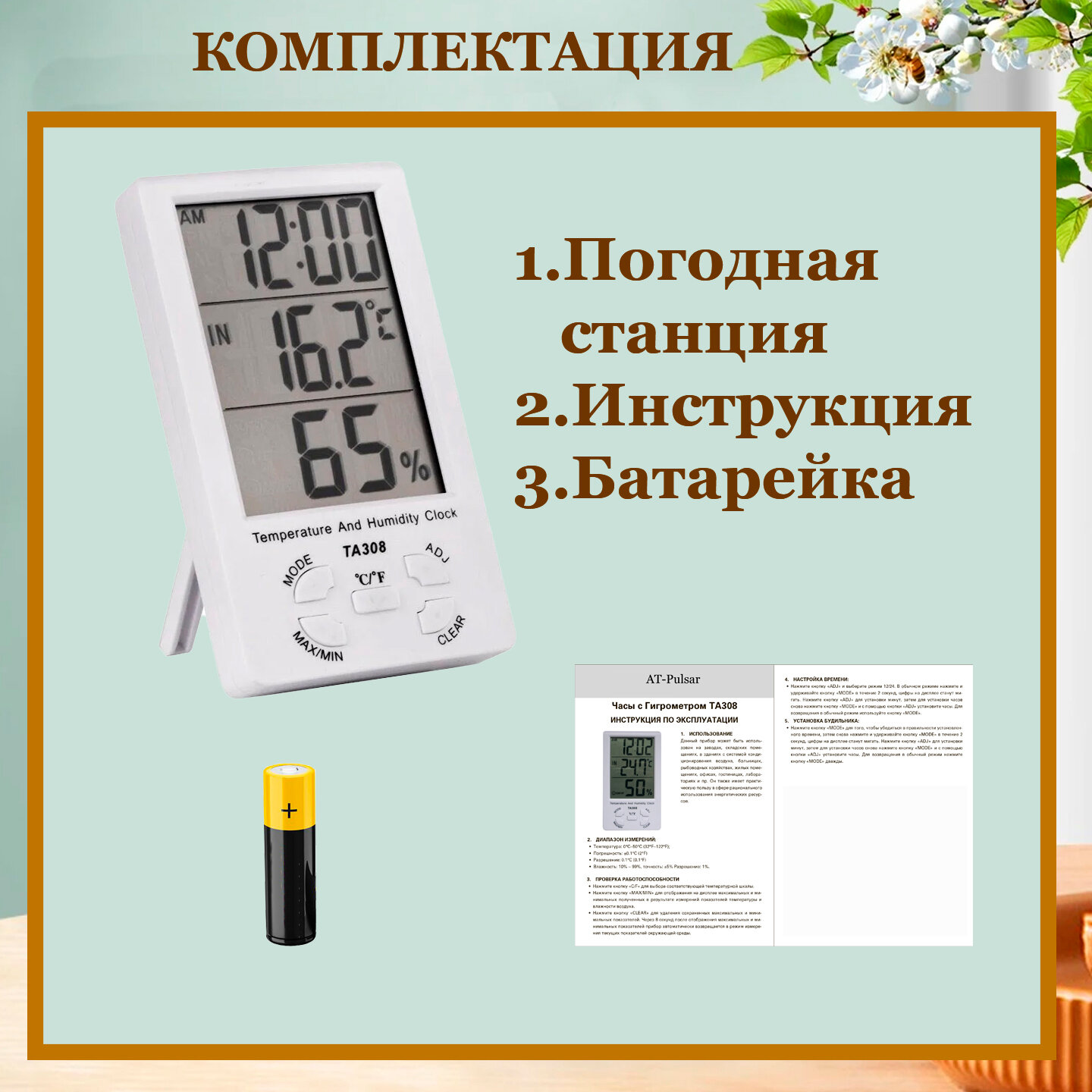 Отзывы на Погодная станция с внутренним датчиком температуры/ термометр гигрометр часы для помещений