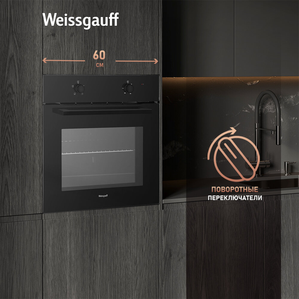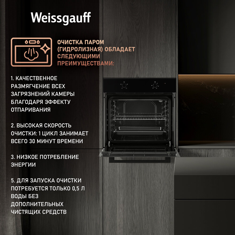 Weissgauff духовой шкаф EOV 19 MBV с Грилем и Конвекцией, Объем 65 литров, 8 функций, Эмаль SMART CLEAN, 3 года гарантии
