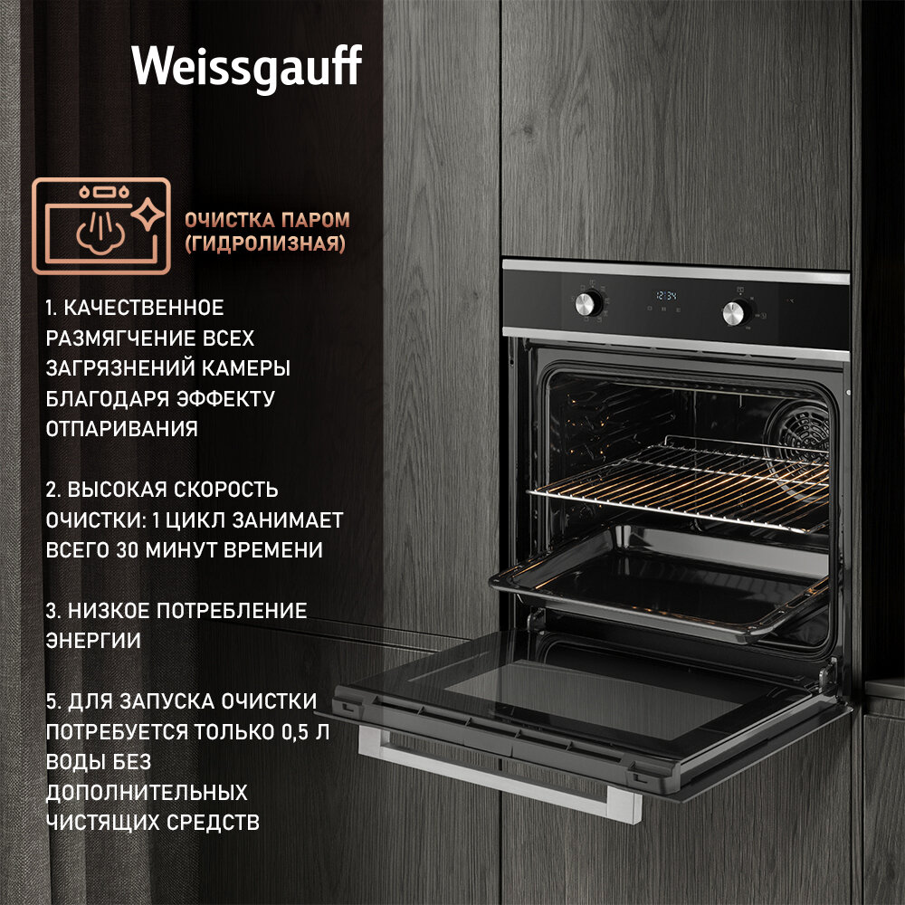 Духовой шкаф Weissgauff EOM 388 PDW Steam Clean, утапливаемые рукоятки PIPO, конвекция 27 800 ₽