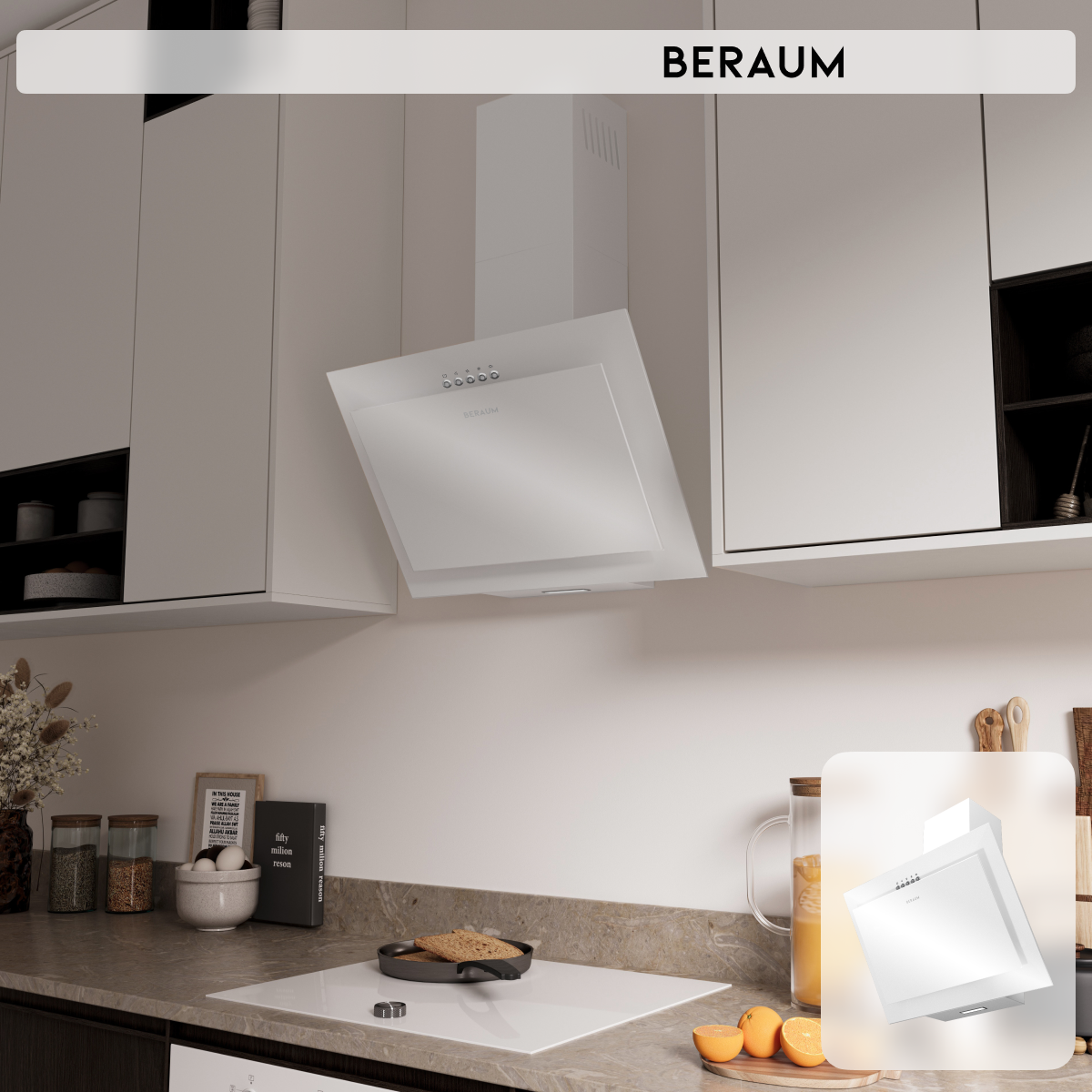 Наклонная кухонная вытяжка LEX MERA 600 WHITE, 60см, отделка: стекло, кнопочное управление, LED лампы, белый.