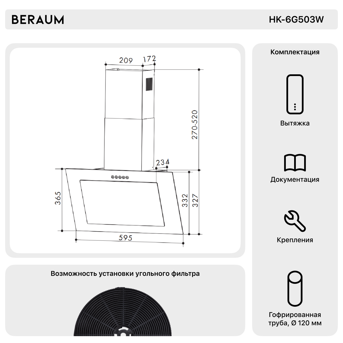 Вытяжка кухонная наклонная HK-6G503W информация: