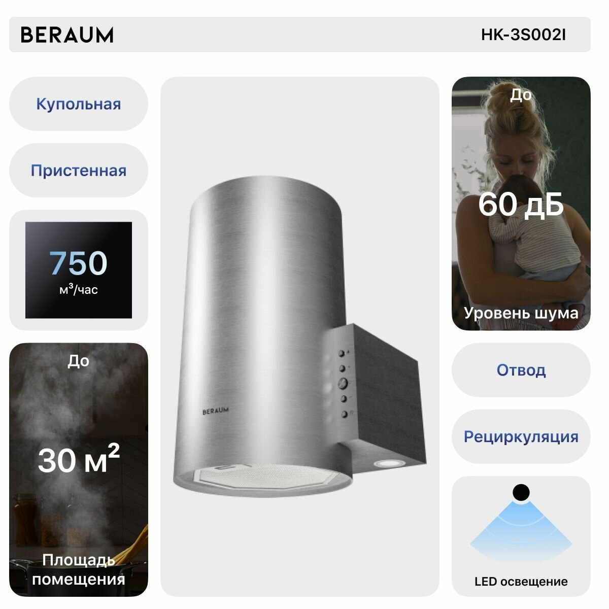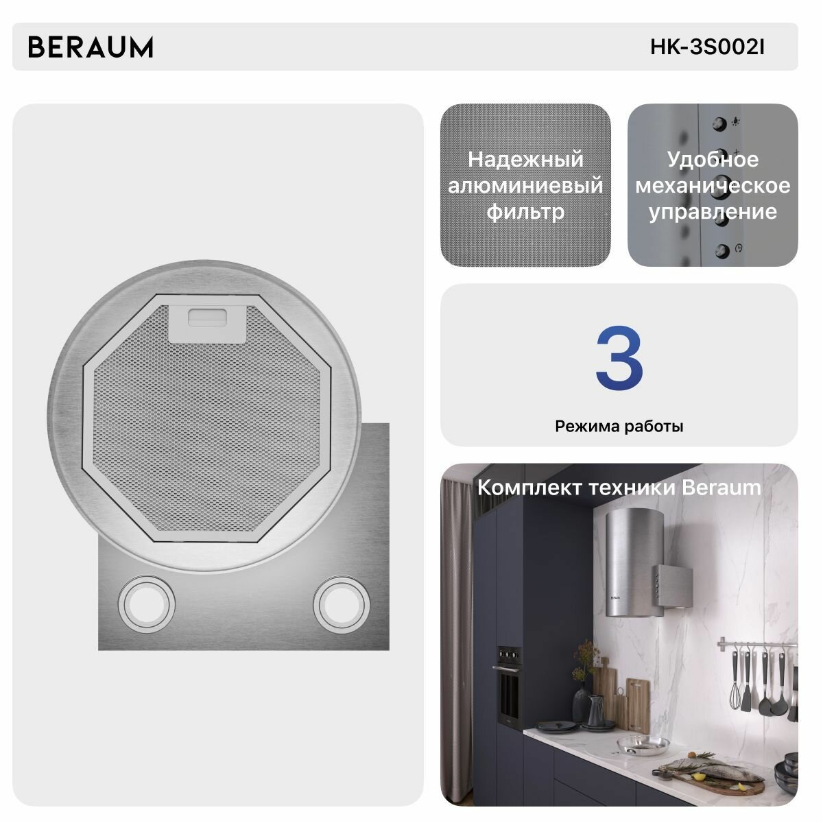 Вытяжка кухонная Beraum HK-3S002I информация: