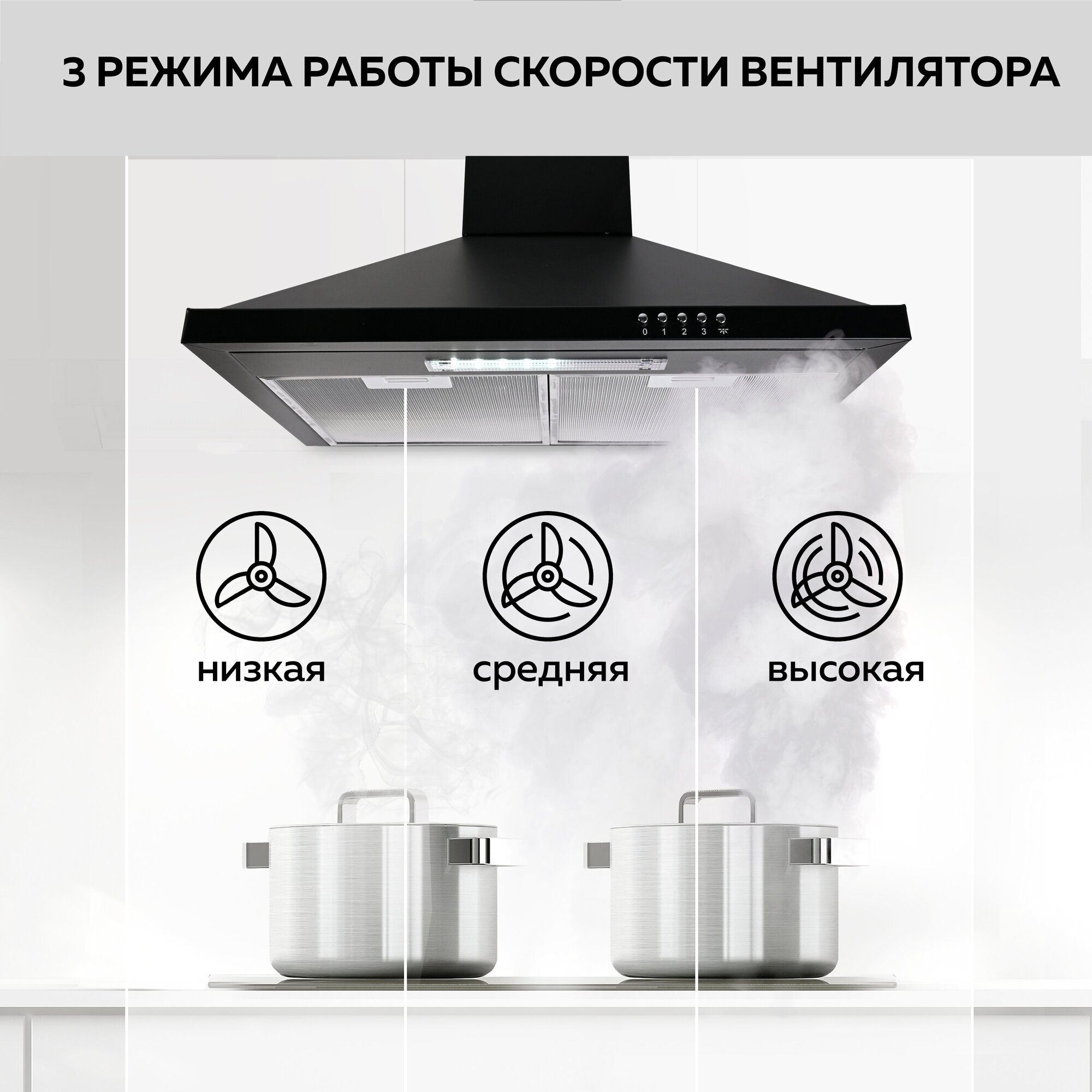 10 цен на GFGRIL Вытяжка кухонная GF-HD100PB, 60 см, 450 м3/ч, 140 Вт, 3 скорости, цвет - черный
