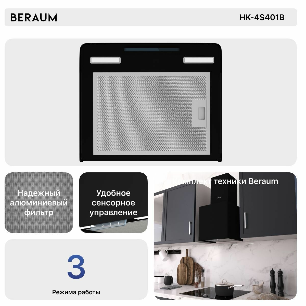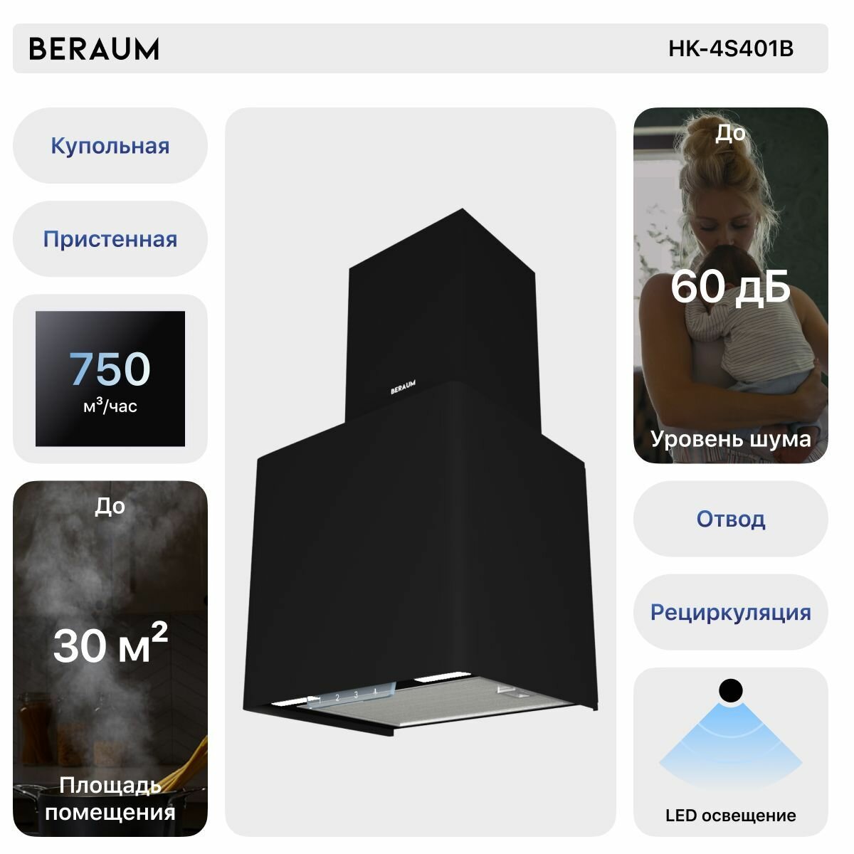 Вытяжка кухонная каминная Beraum HK-4S401B информация: