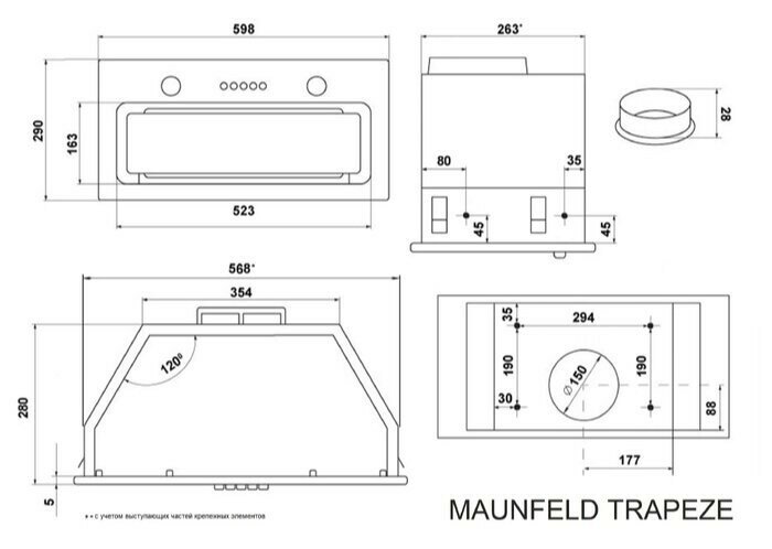 Встраиваемая вытяжка Maunfeld TRAPEZE 603EM нержавеющая сталь информация: