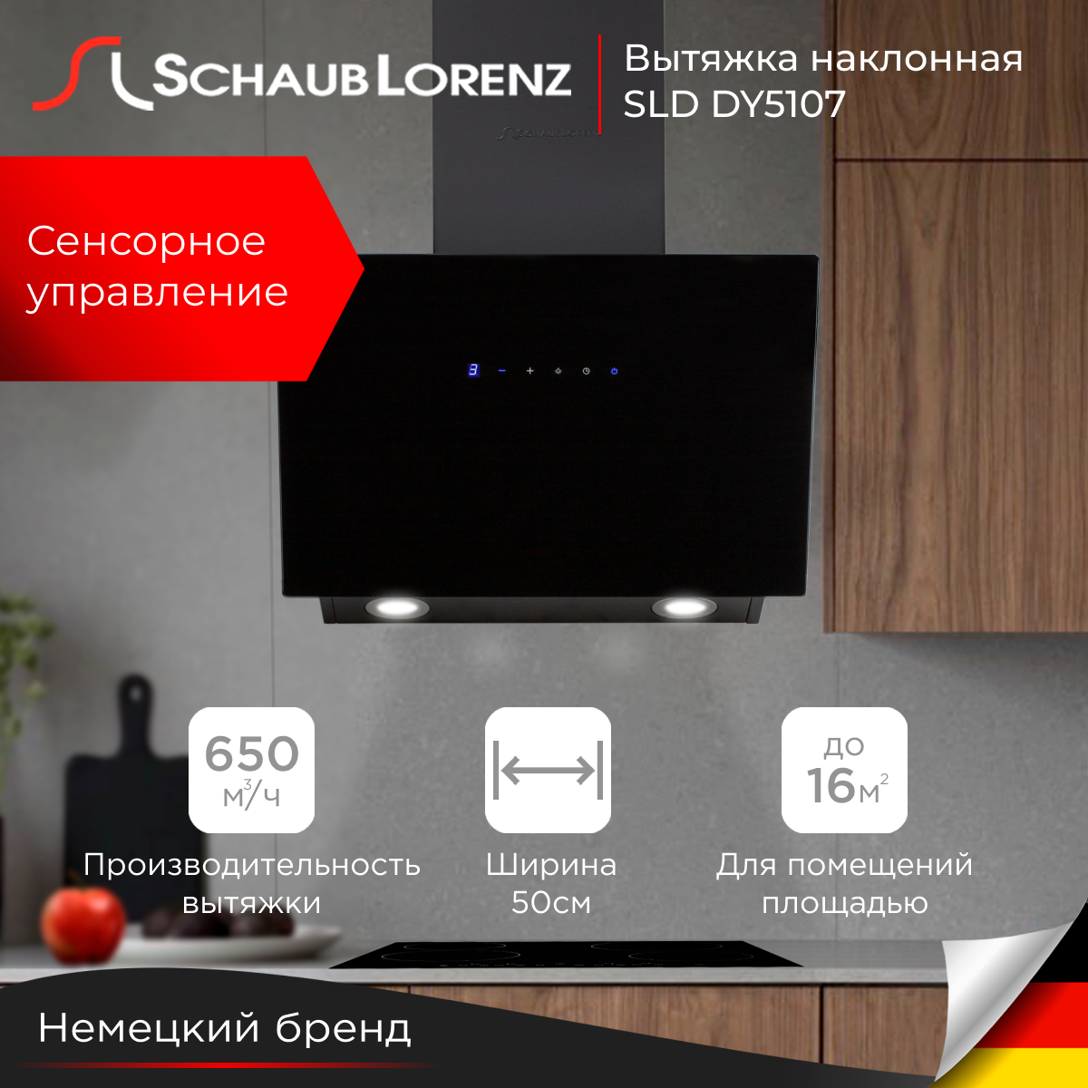Вытяжка кухонная наклонная Schaub Lorenz SLD DY5107, 50 см, черное стекло информация: