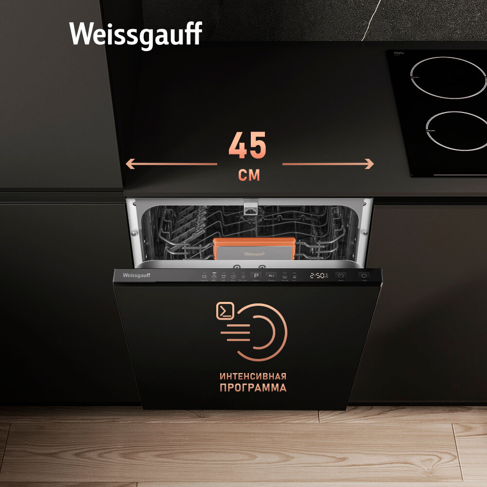 Посудомоечная машина встраиваемая Weissgauff BDW 4533, Wi-Fi Inverter Autoopen